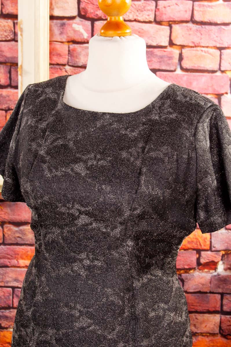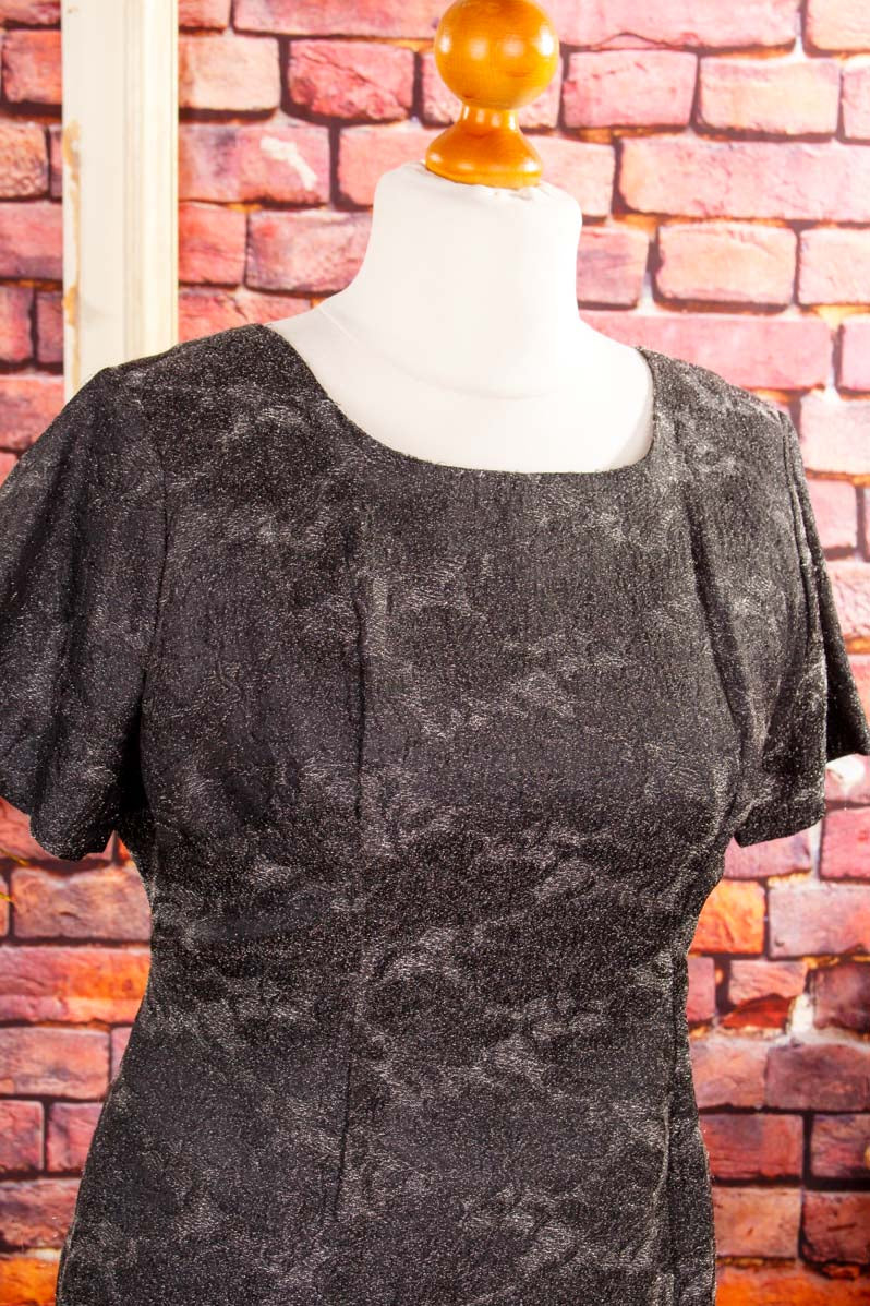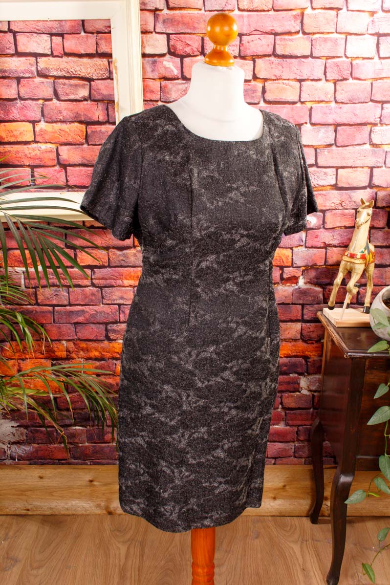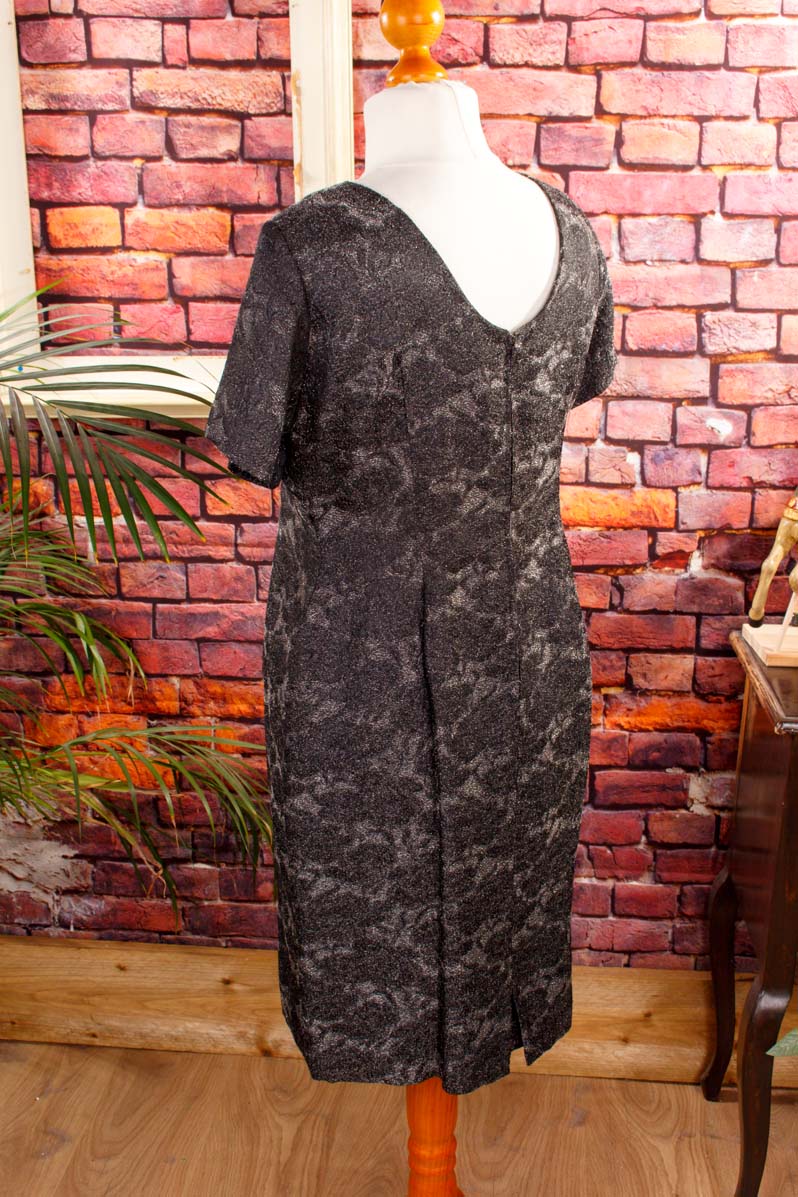 elegantes Kleid aus den 60er Jahren aus silberfarbenem Glitzerstoff