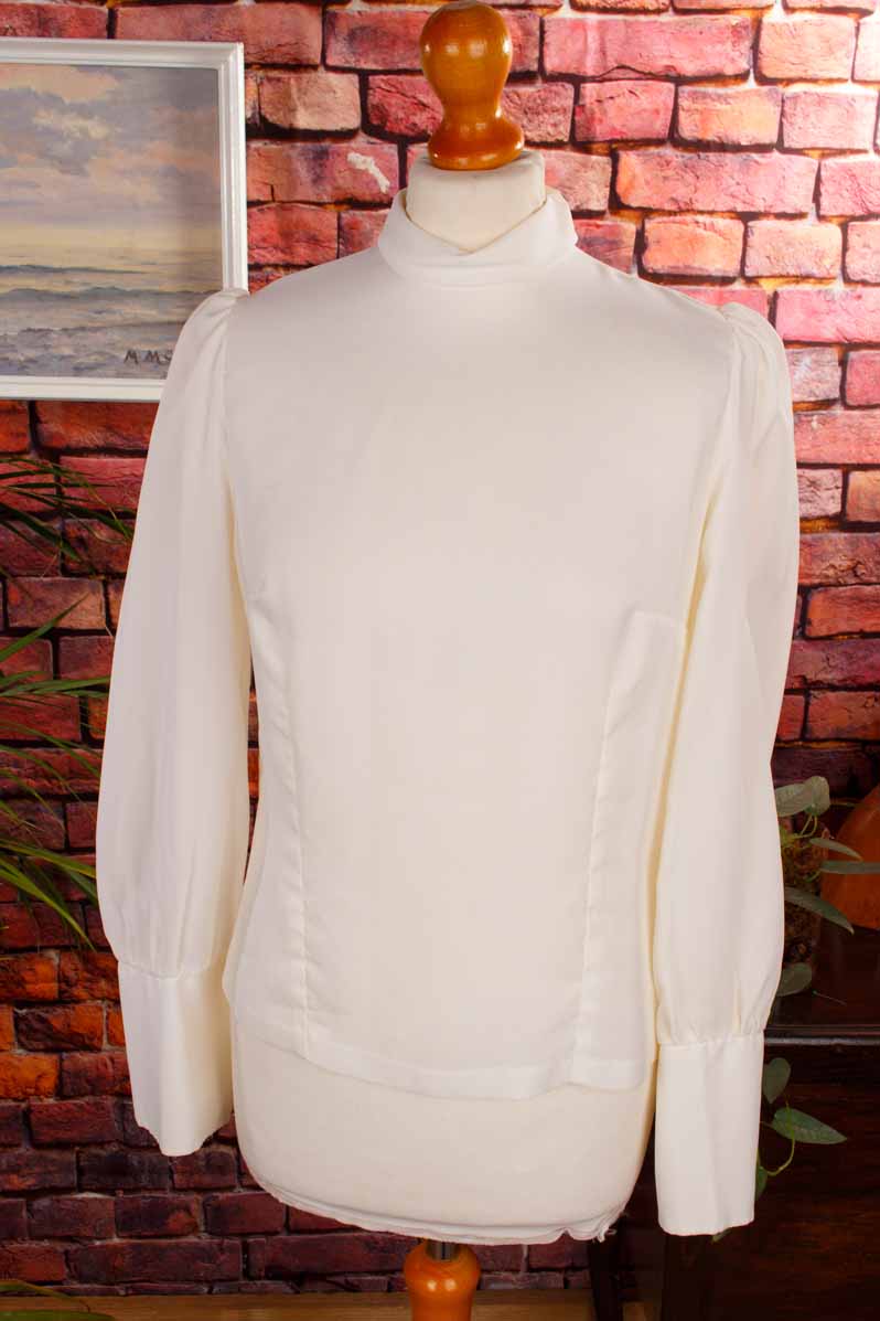 cremeweiße Bluse in tailliertem Schnitt mit Knopfleiste im Rücken und sehr breiten Manschetten