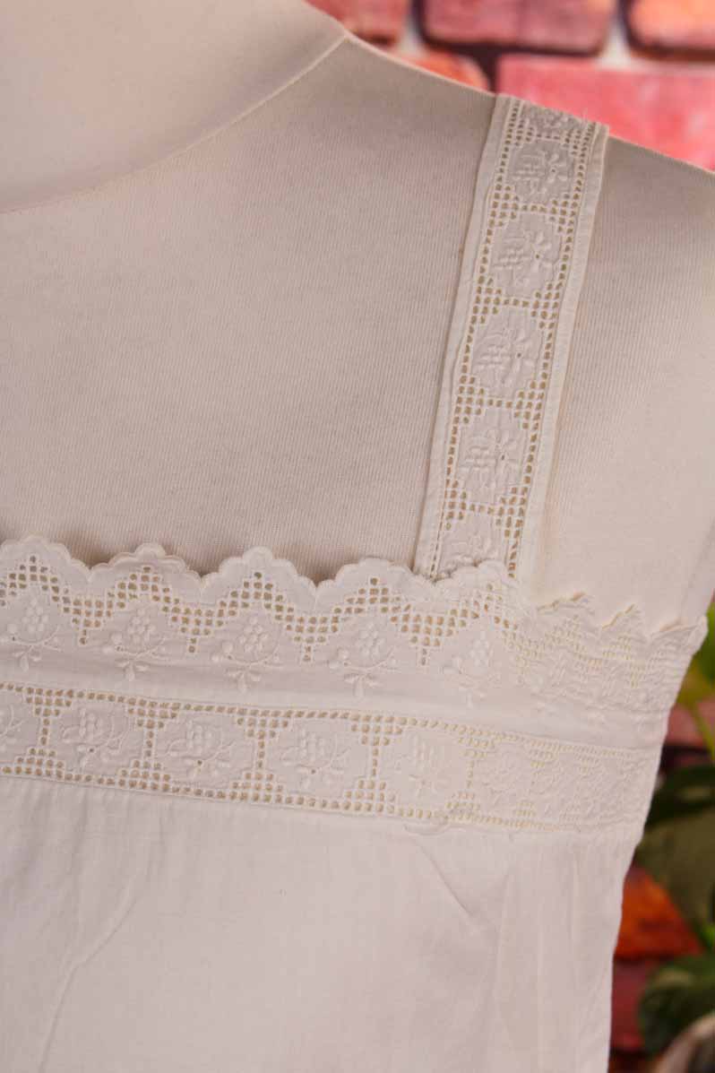 altes Hemdchen aus weißem Baumwollstoff und edler Spitze