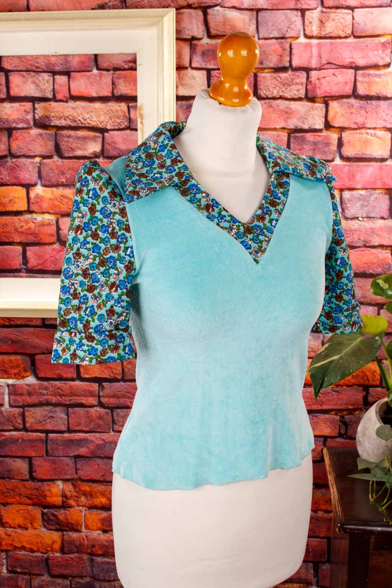 Samt Top türkis Megakragen