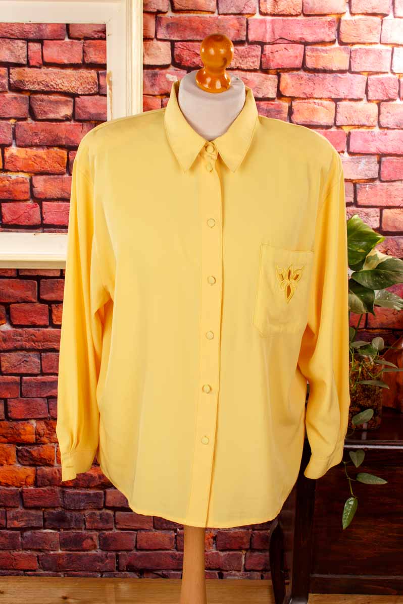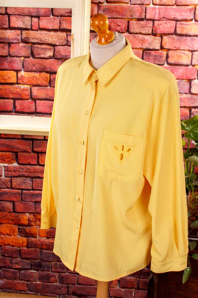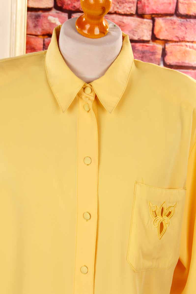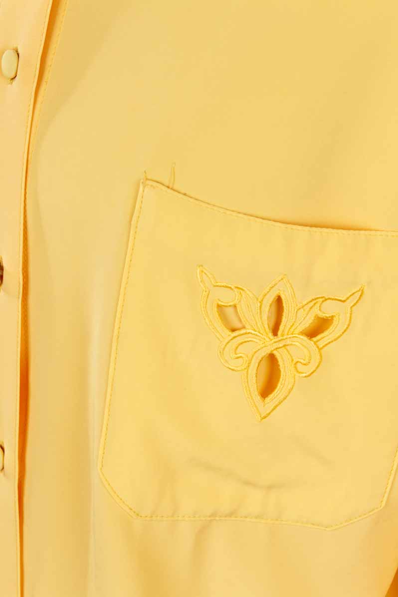 elegante Bluse aus seidig schimmerndem, sonnengelbem Stoff mit Stickerei