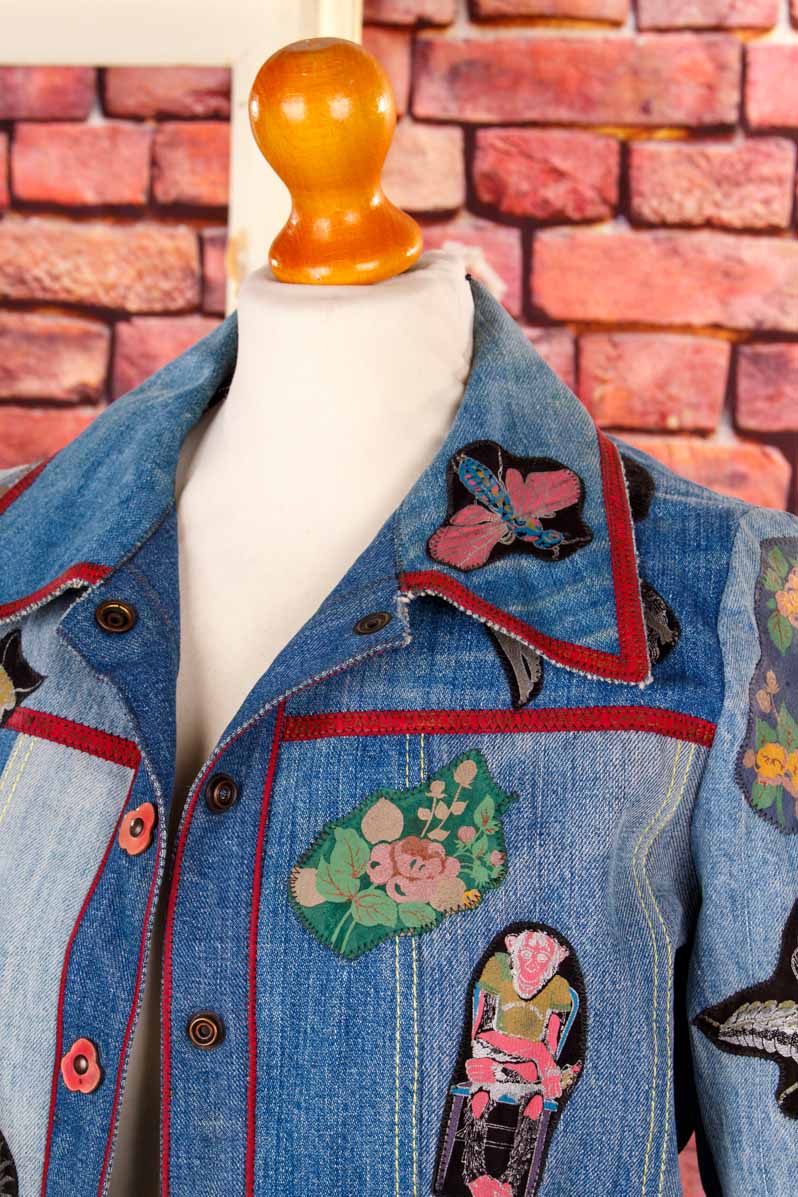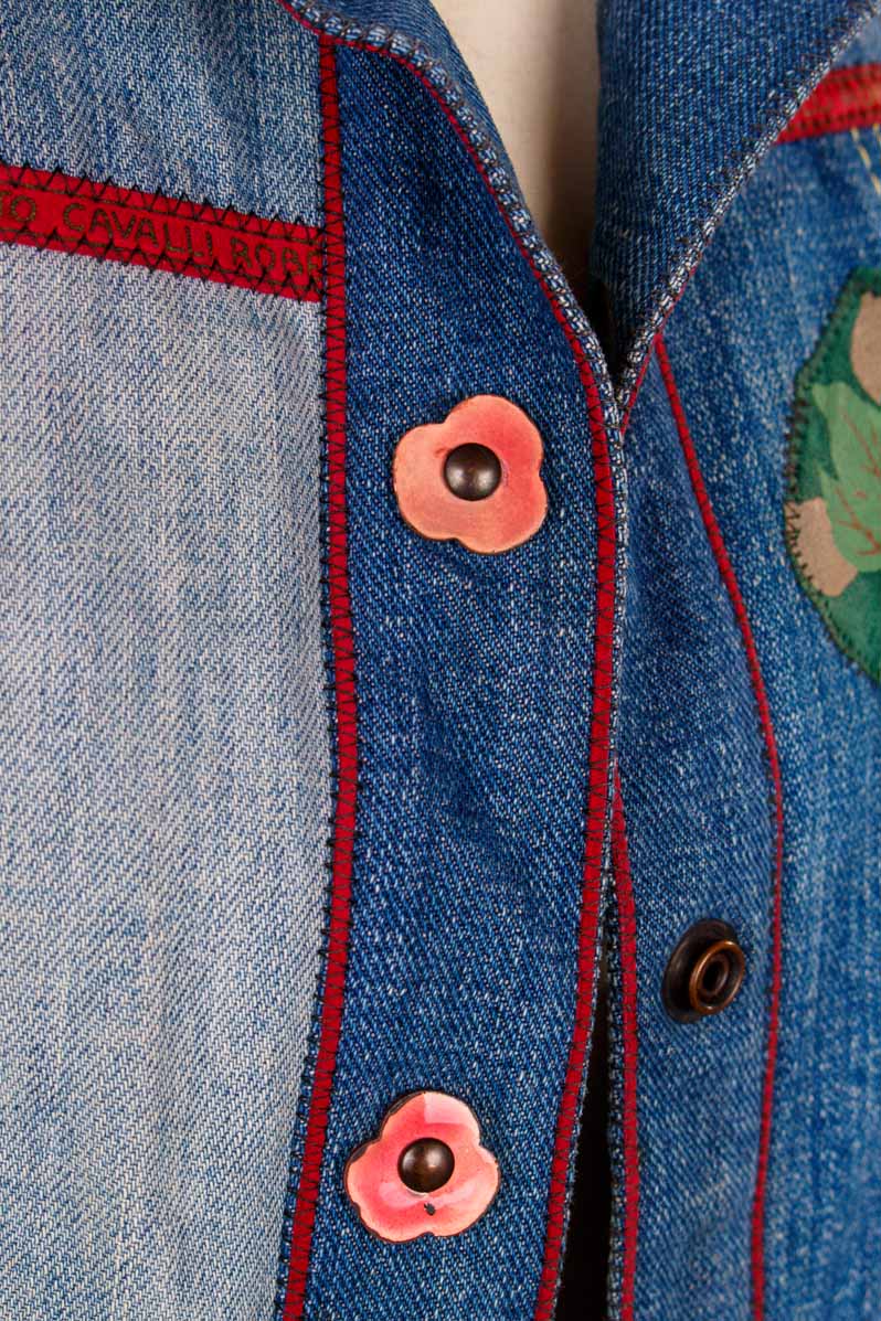 originale Vintage Jeans-Jacke aus den 70er Jahren von Roberto Cavalli mit Lederpatches