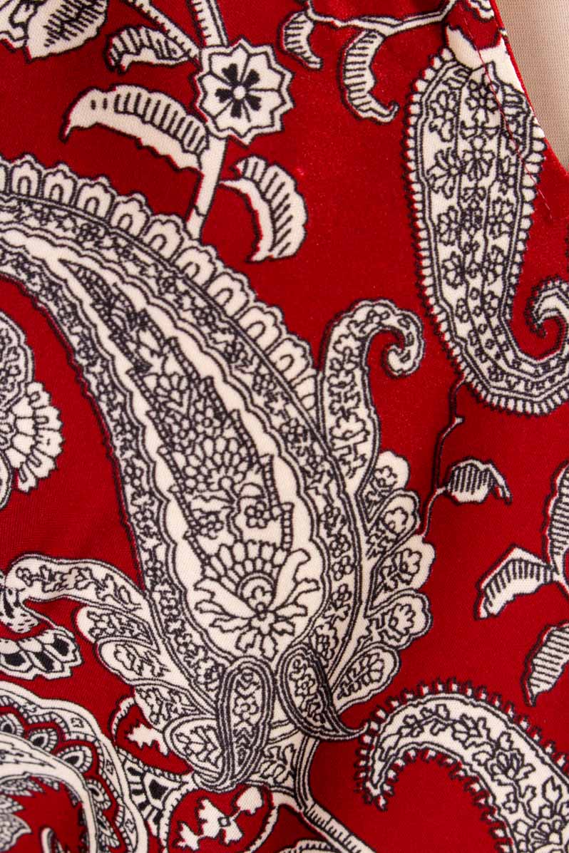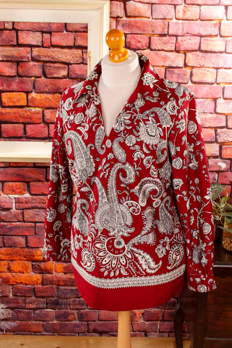 weinrot-weiß gemustertes Lang-Top aus leichtem Stretchstoff mit großem Kragen