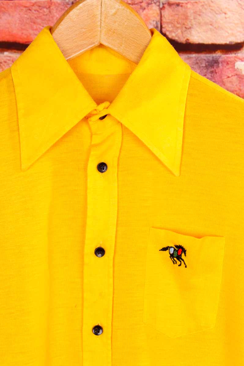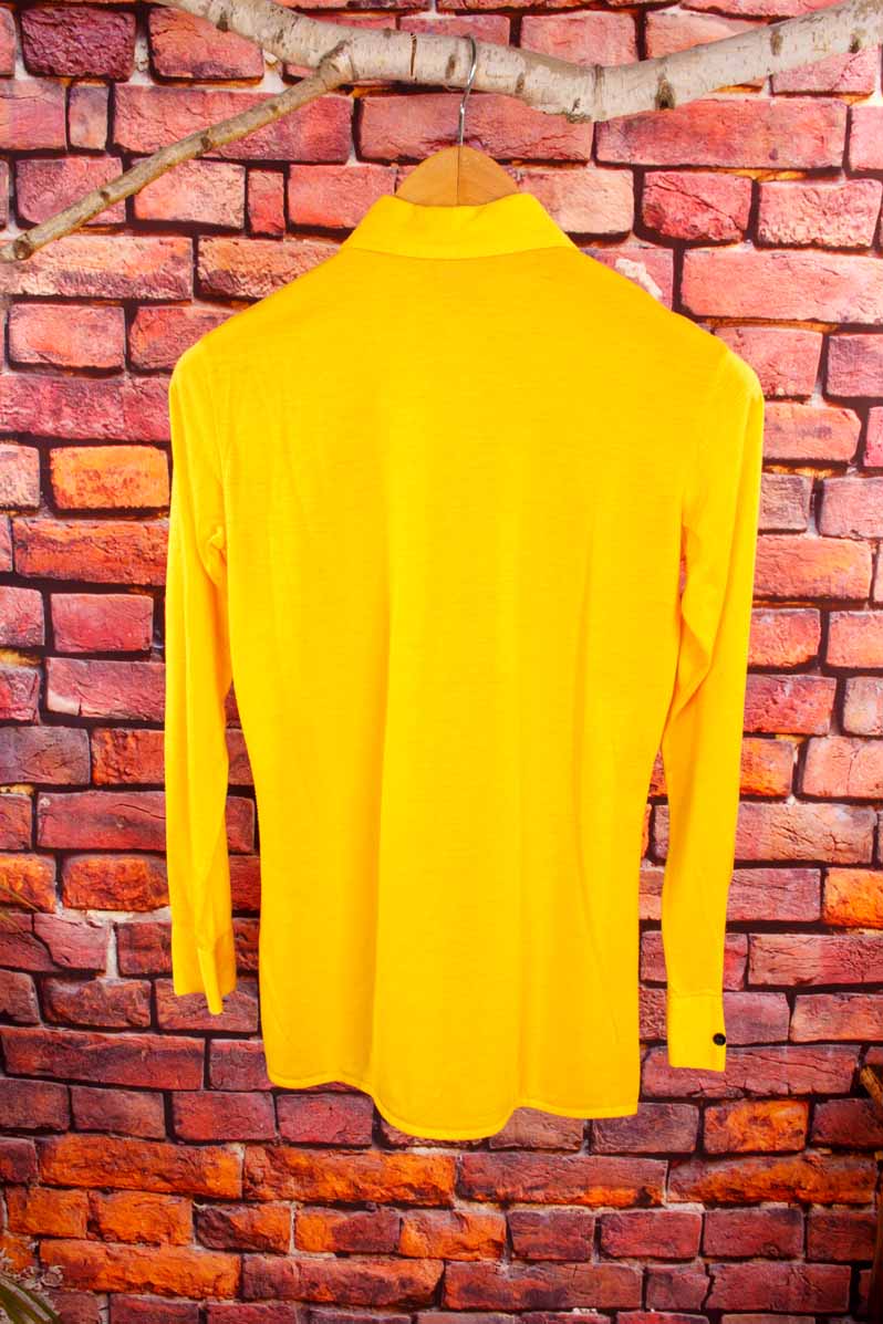 leuchtend gelbes Hemd aus dünnem Strickstoff mit großem Kragen