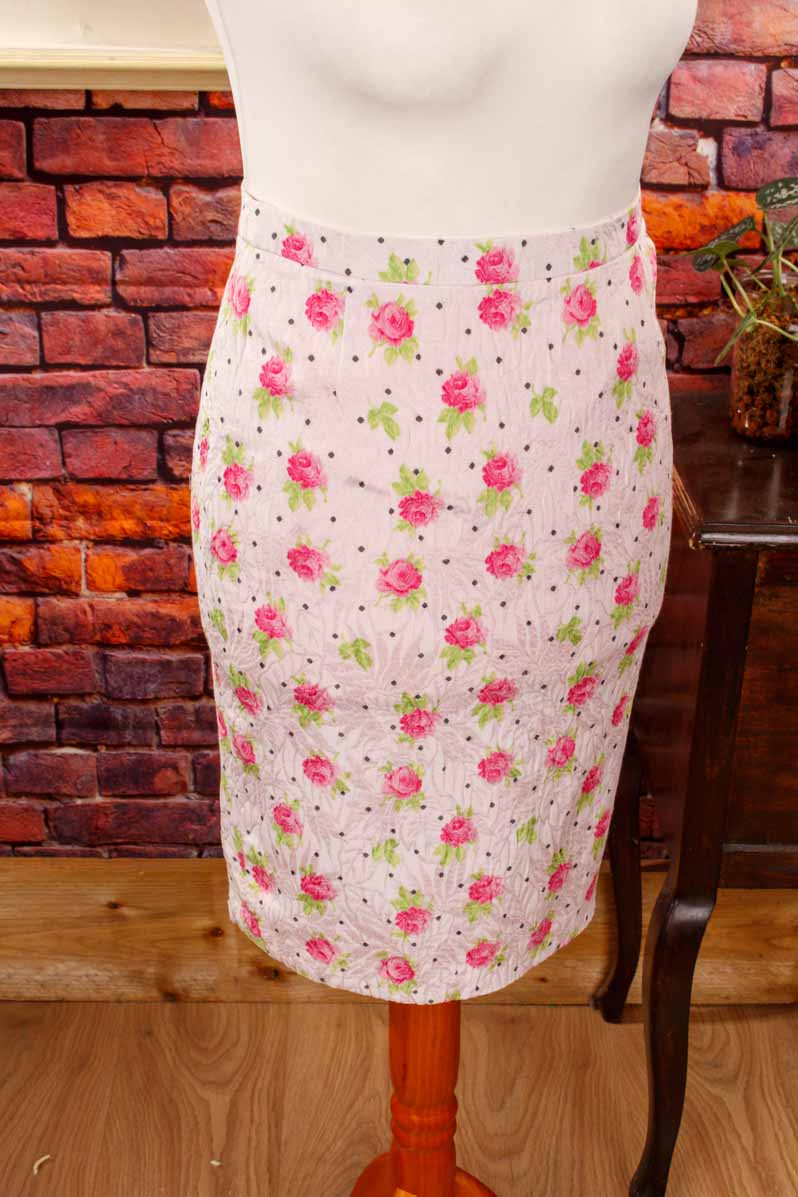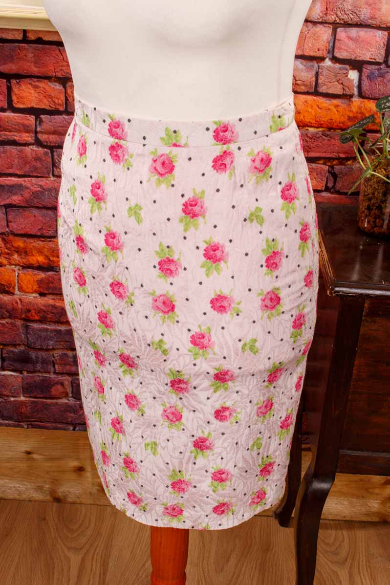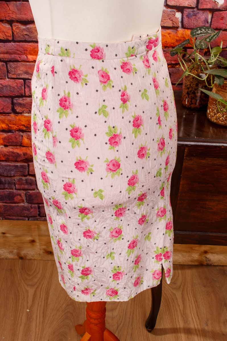 rosafarbener Rock aus strukturiertem Seidenmix mit Rosenmuster von ESCADA