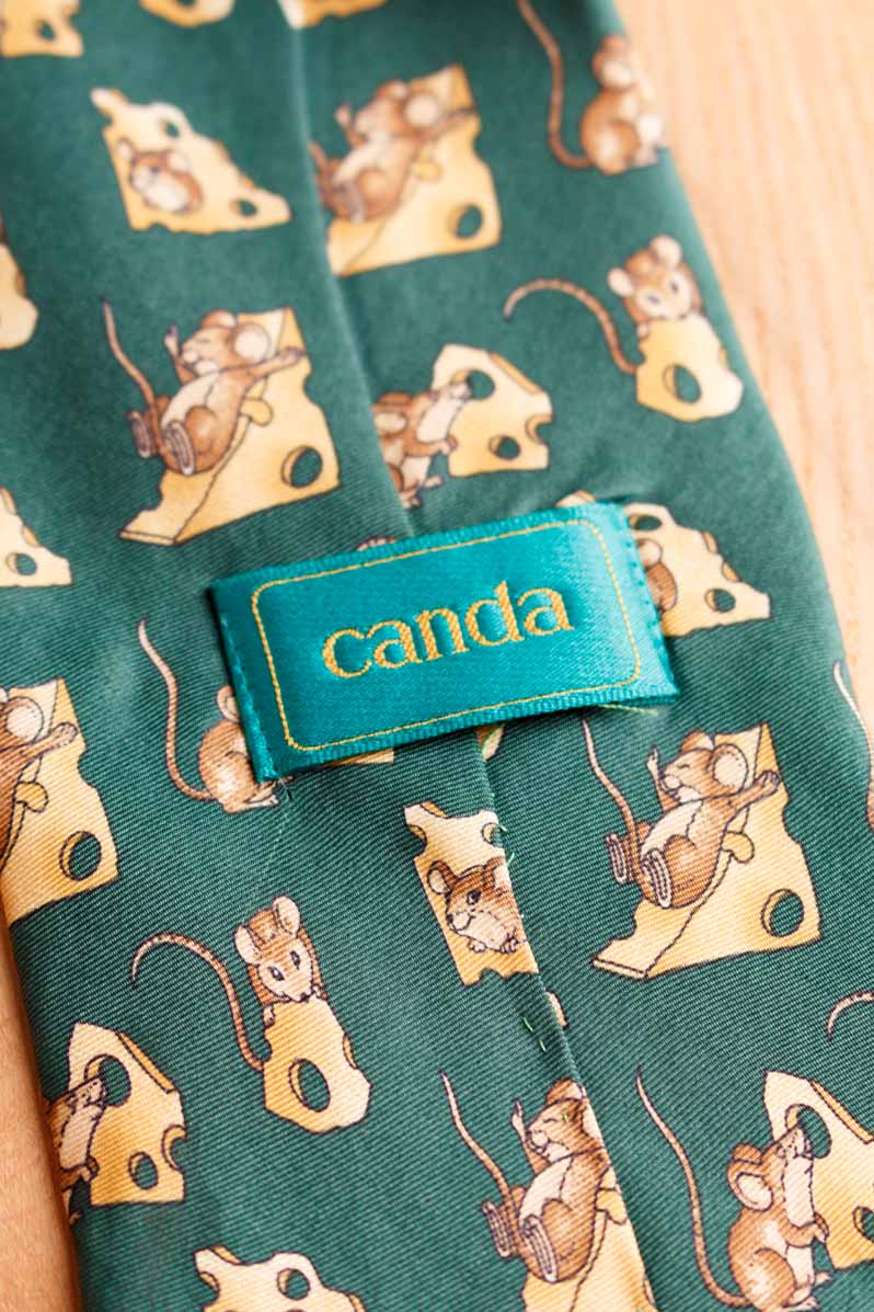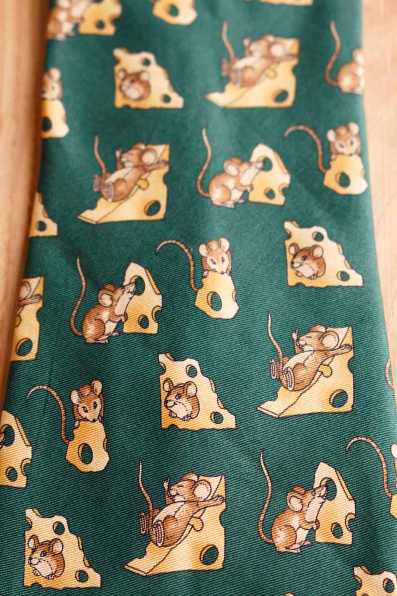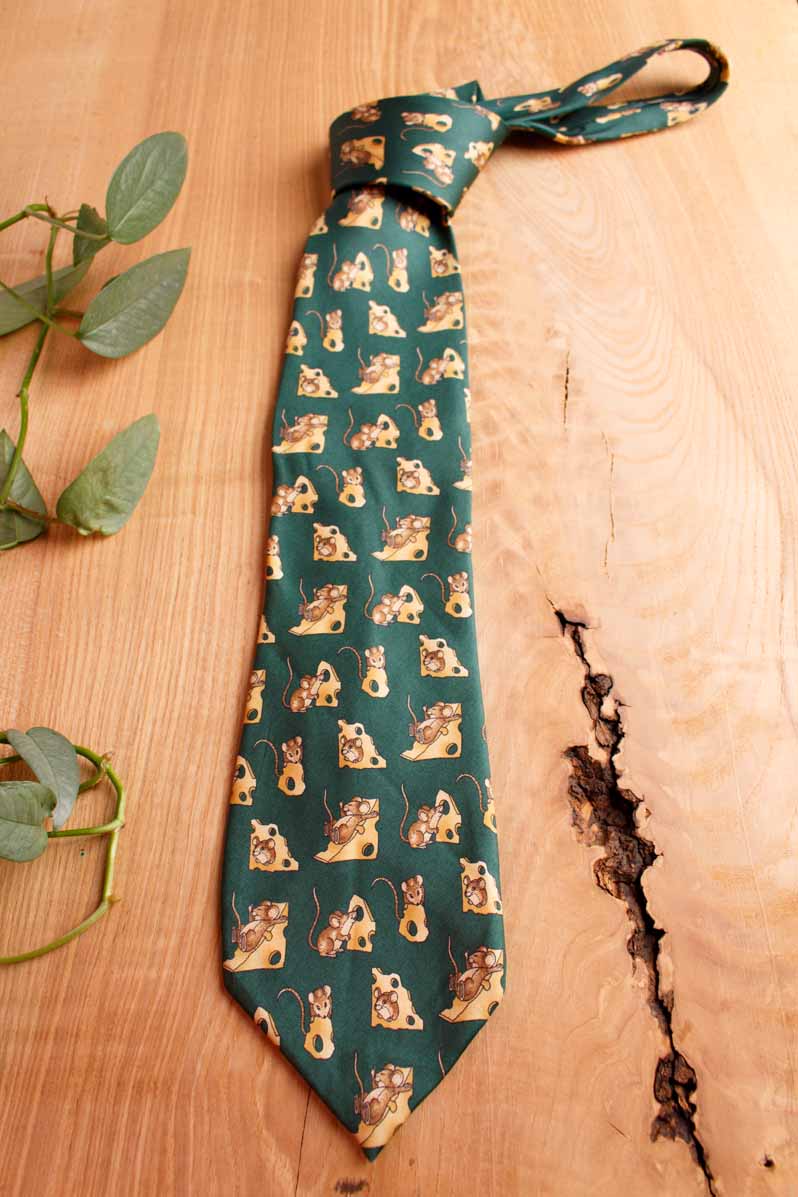 klassische Krawatte aus grüner Seide mit Käse-Mäuse-Motiv
