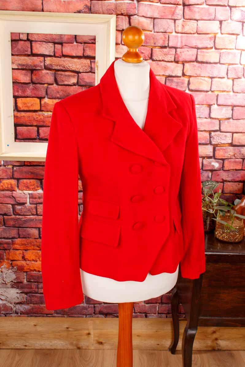 leuchtend roter, kurzer Blazer aus dickem Wollmix mit doppelter Knopfleiste