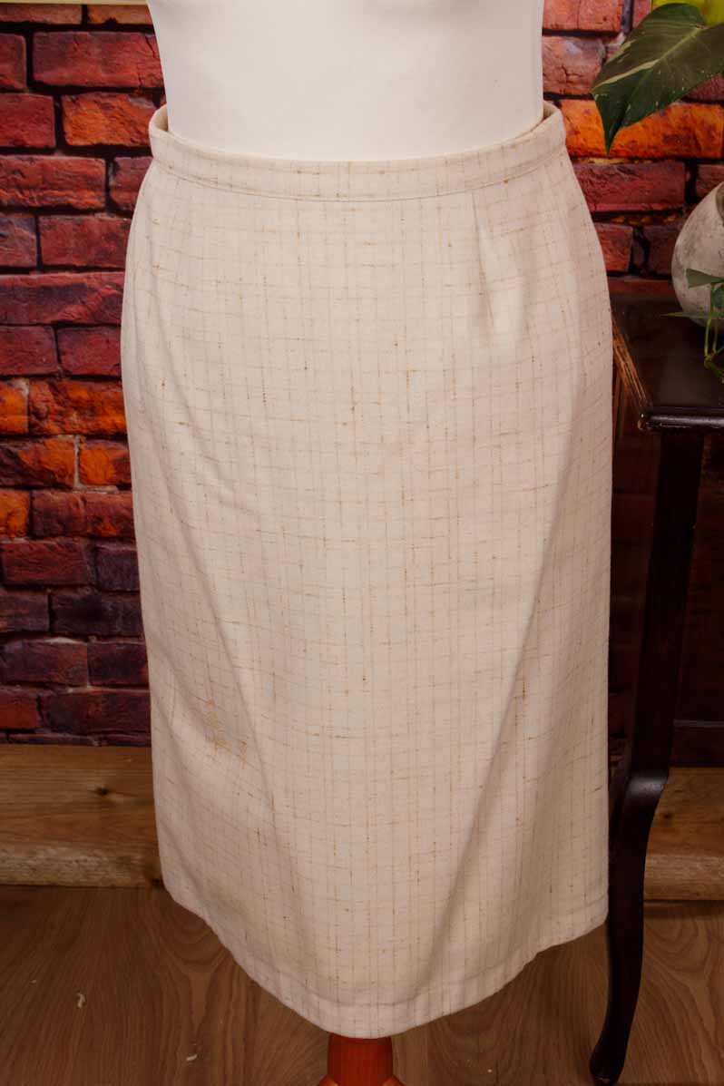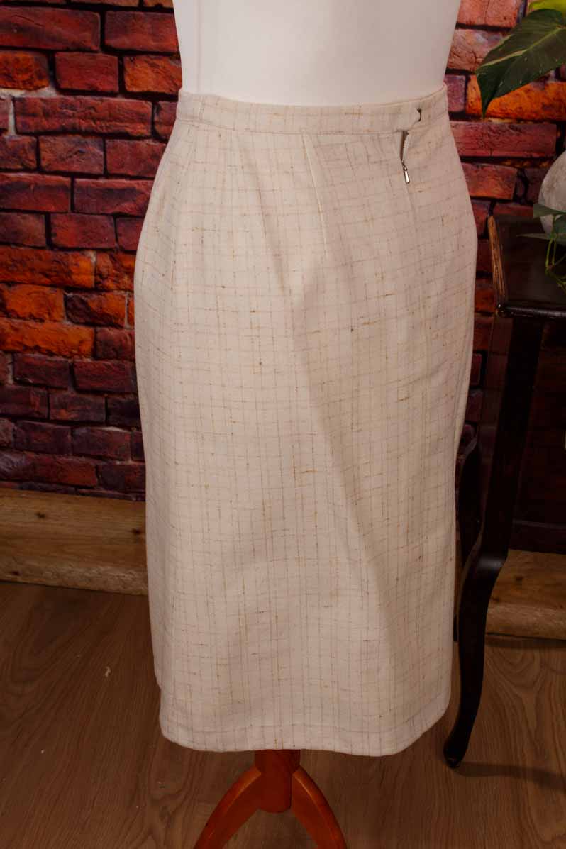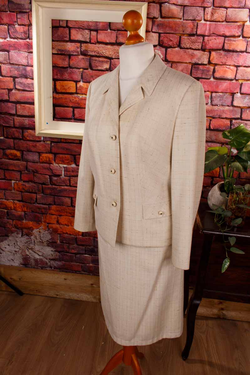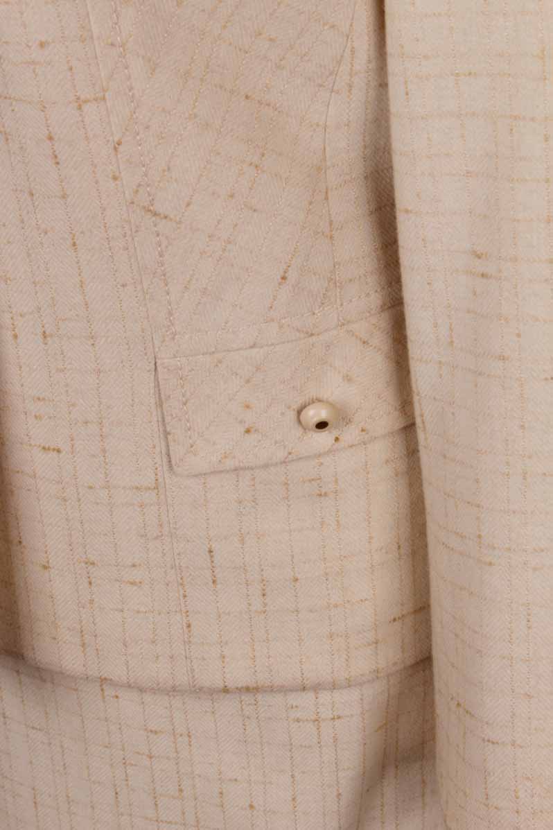 elegantes Kostüm aus beigefarbenem Wollstoff mit leichtem Karomuster
