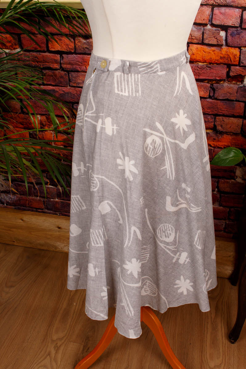 grau gemusterter Rock aus leichtem Baumwollstoff in schwingend ausgestelltem Schnitt