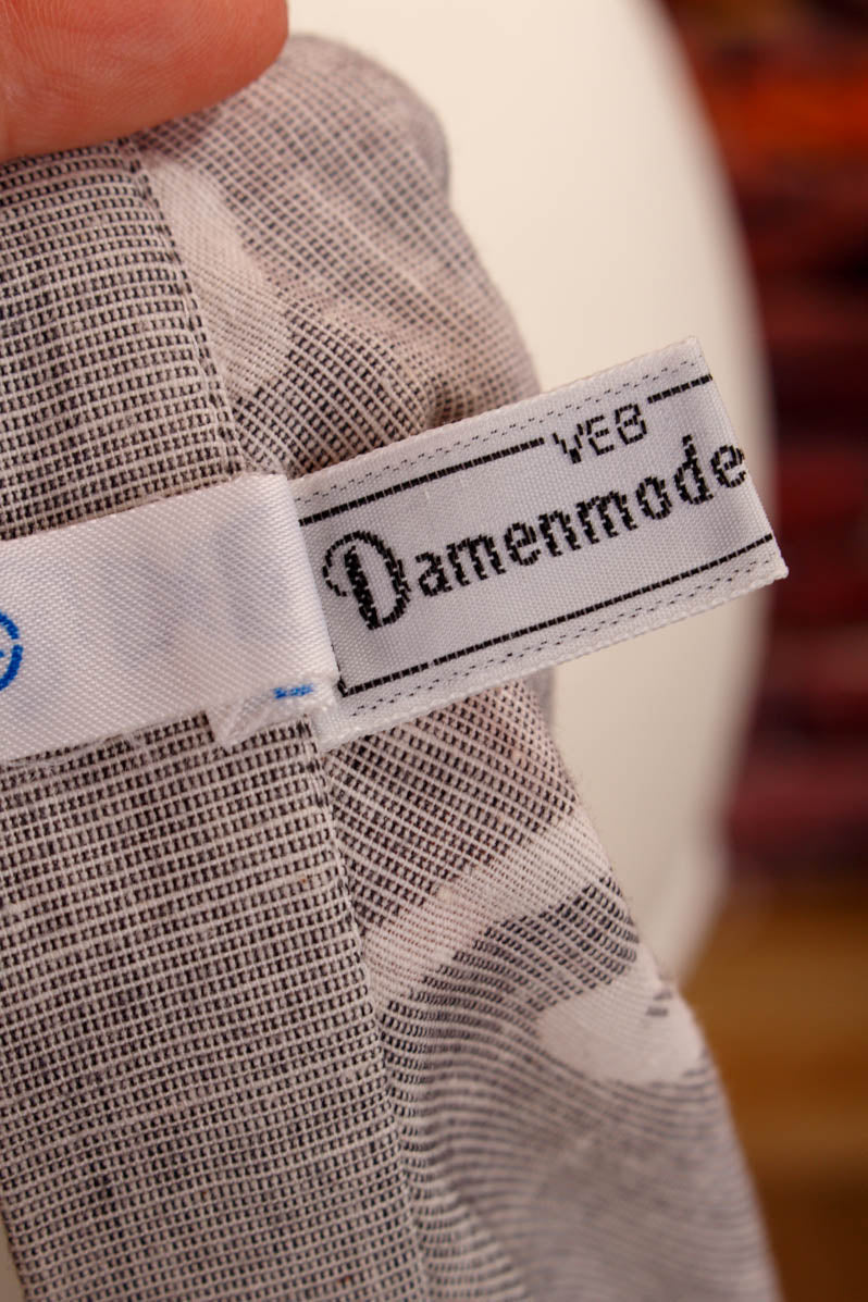 mit festem Bund, seitlich mit Knopf und Reißverschluss, ungefüttert. Original 80er-Jahre DDR-Mode!