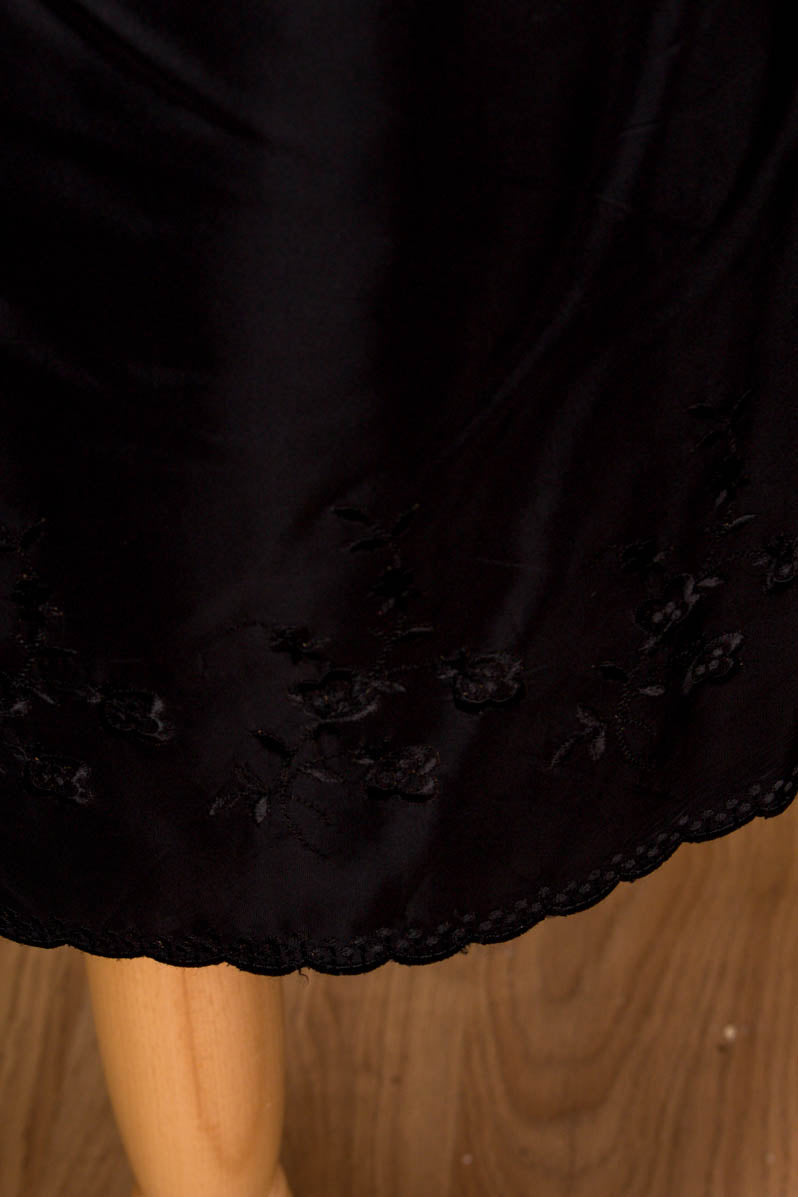 Vintage Unterrock schwarz bestickt
