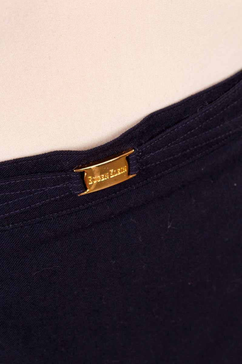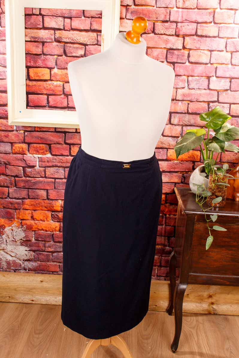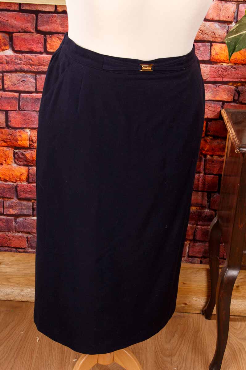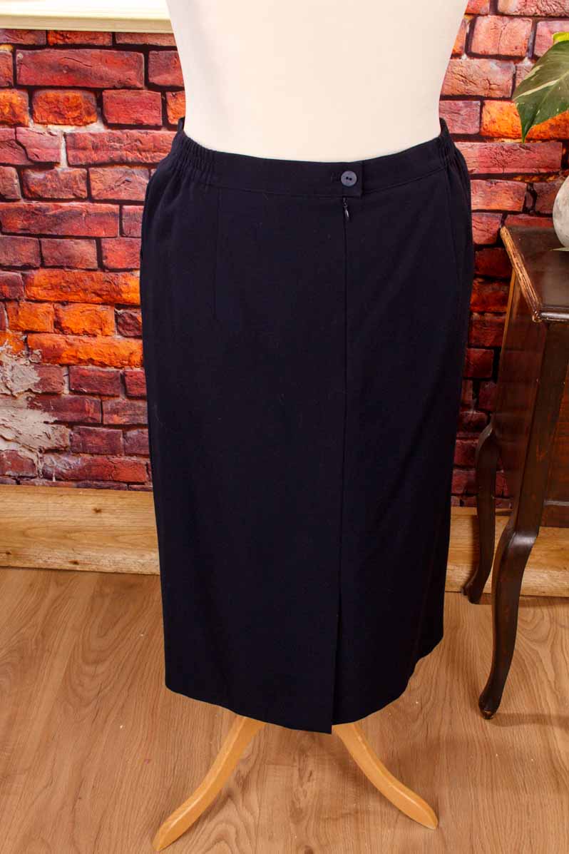eleganter Rock aus dunkelblauer, fast schwarzer Wolle mit Bequembund und Gehschlitz