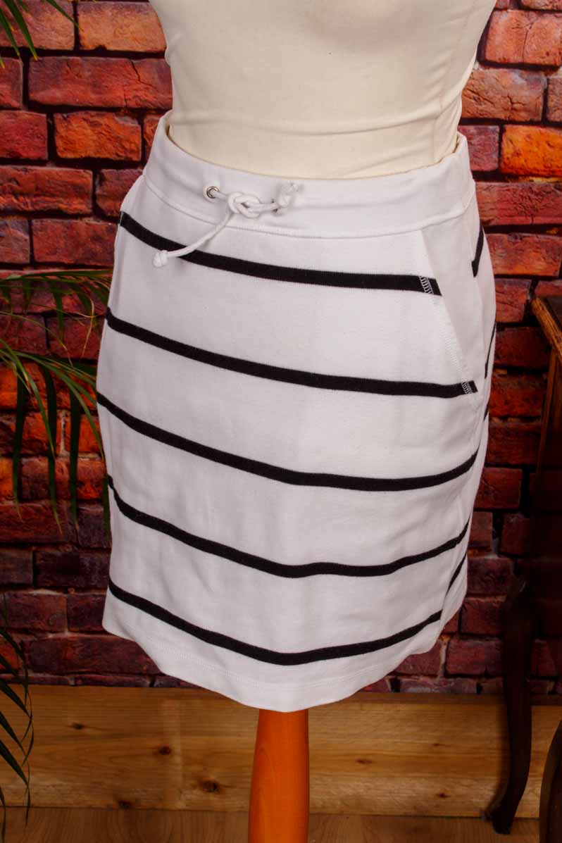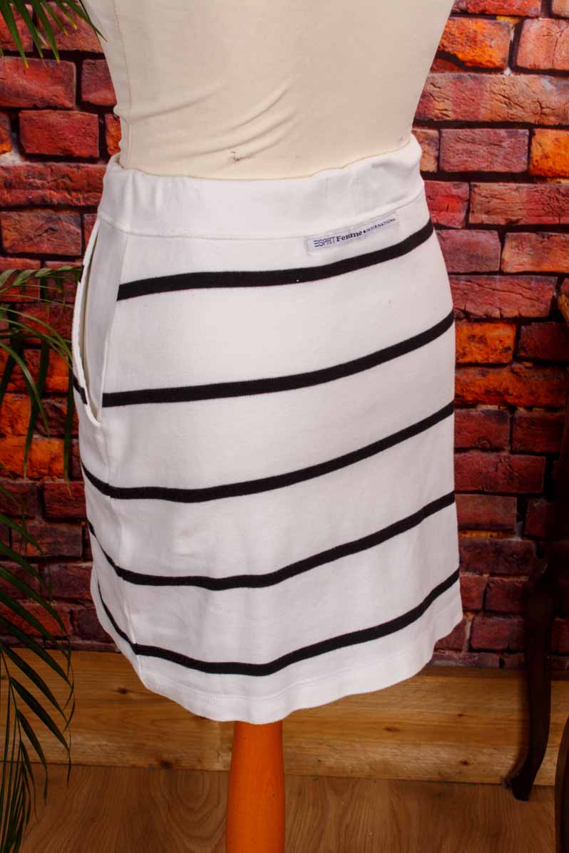 kurzer Rock aus weichem, weißem Baumwollstretch mit schwarzem Streifenmuster und großen Eingrifftaschen
