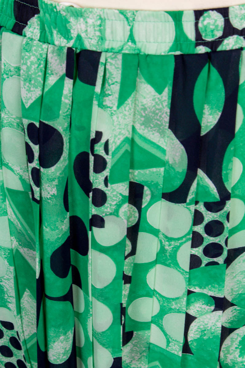 feiner Rock aus leichtem, grün gemustertem Stoff mit dehnbarem Bund
