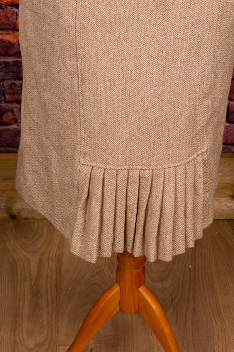 extravaganter Rock aus weichem, beigefarben gemustertem Wollstoff mit Taschen und Faltensaum