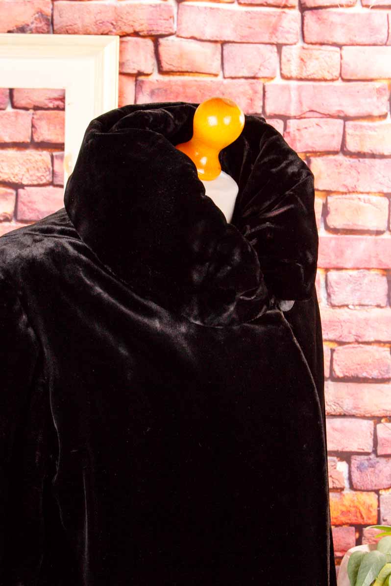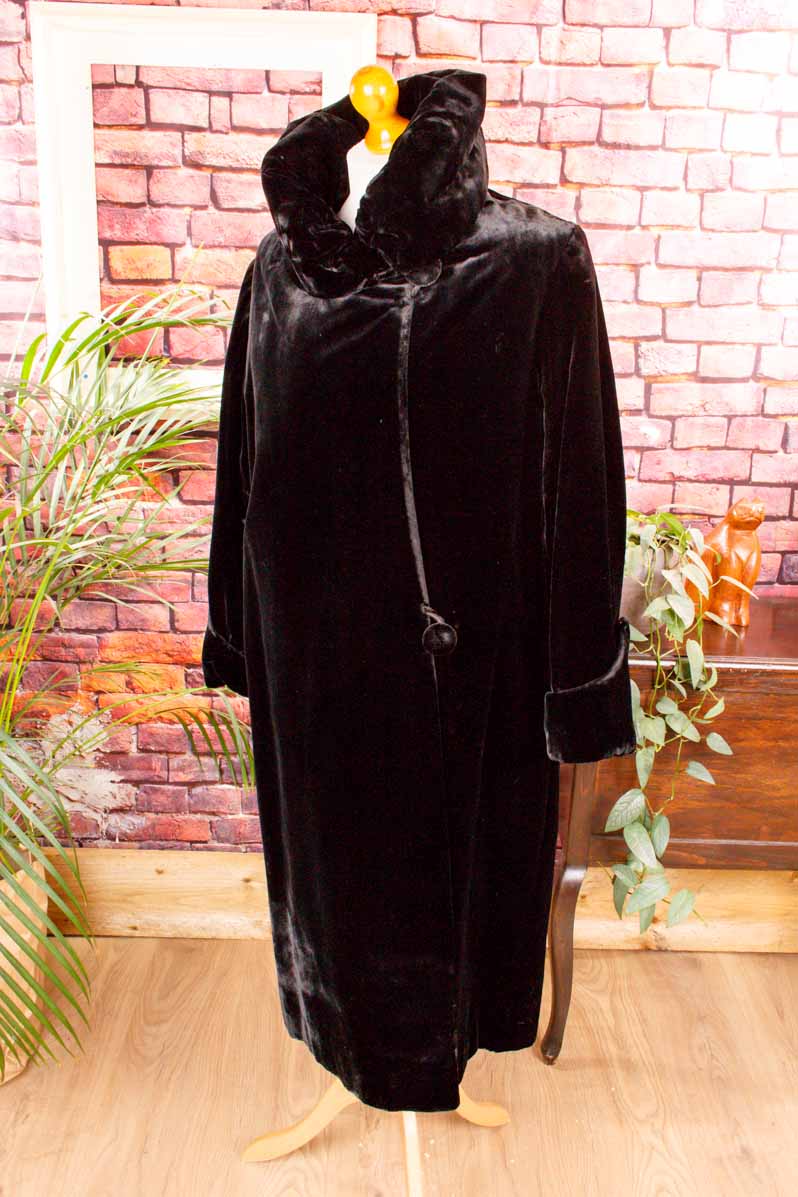Inklusive MwSt. zzgl. Versandkosten Lieferung:Dieser atemberaubende Samtmantel aus den 1920er Jahren ist ein wahres Statement-Piece für alle, die es dramatisch lieben! Das schwere, schwarze Samt-Material schimmert geheimnisvoll im Licht und verleiht jedem Auftritt eine Prise Glamour und Mystik. Der üppige Kragen an der Vorderseite ist absolut umwerfend – zwei große, elegante Knöpfe halten den Mantel zusammen und sorgen für einen raffinierten Abschluss. Das warme braune Futter bietet nicht nur Komfort, sondern überrascht auch mit einem charmanten Kontrast. Eine versteckte Innentasche ermöglicht es dir, deine wertvollsten Schätze sicher zu verstauen. Perfekt für Vintage-Liebhaber, die ihre Garderobe mit einem Hauch von zeitloser Eleganz und Vintage-Flair bereichern möchten.original aus den 1920er Jahren