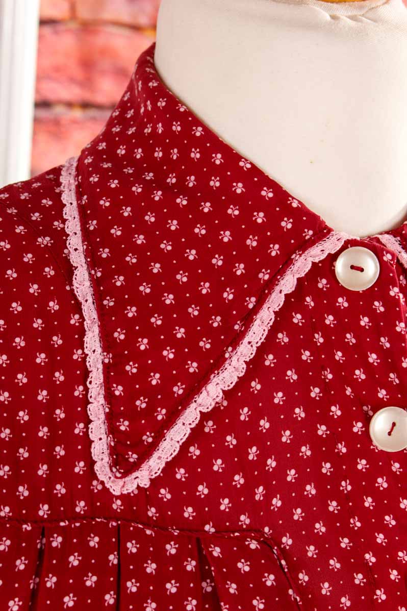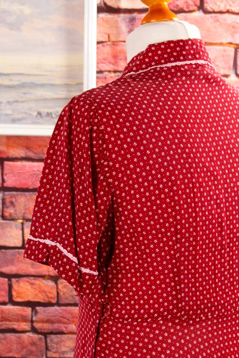 schickes Kleid aus feinem, weinrotem Viskosestoff mit zartem Blümchenmuster und großem Kragen