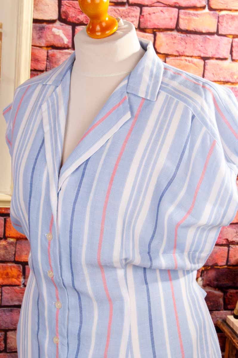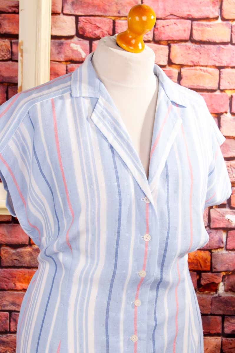 blau gestreiftes Kleid aus weichem Stoff mit durchgehender Knopfleiste