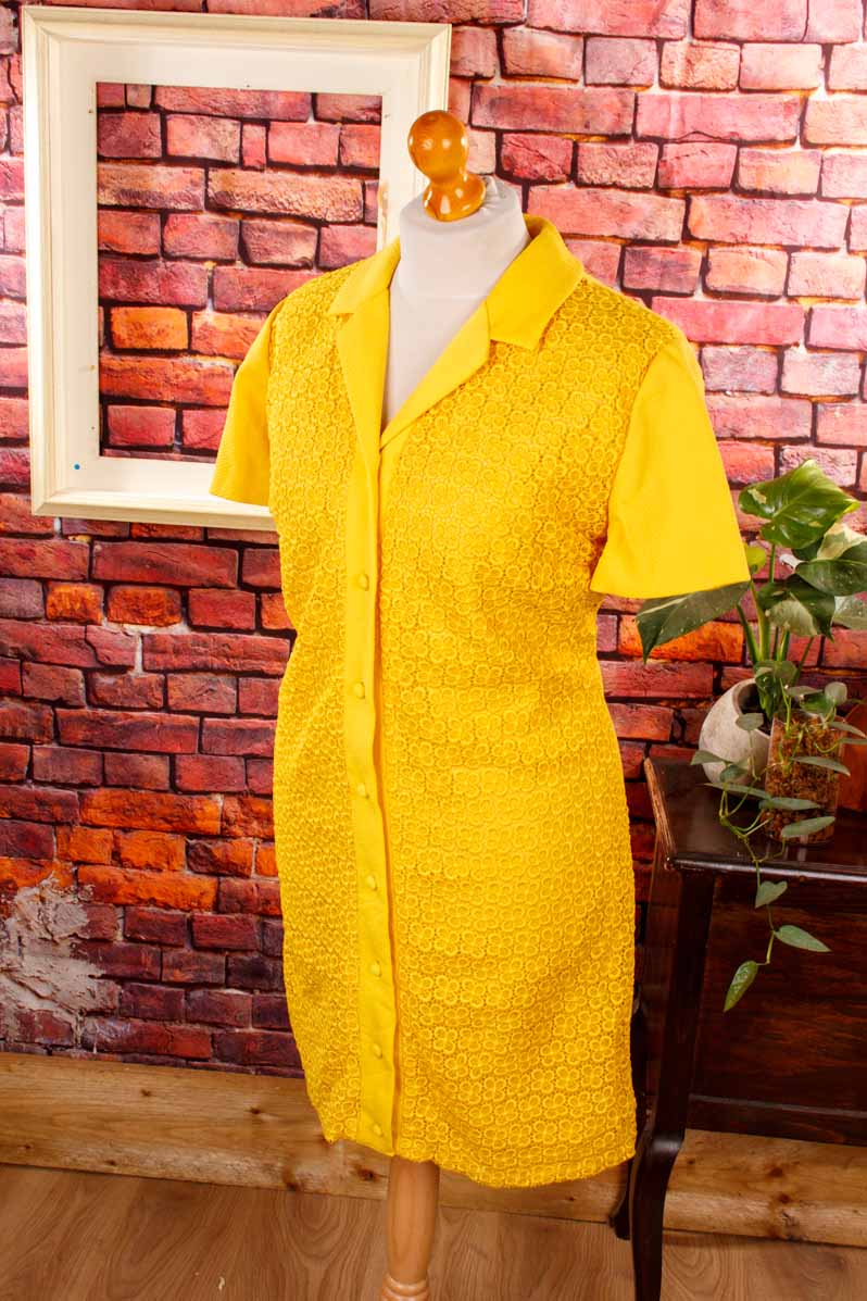 schickes Kleid aus dicker leuchtend gelber Spitze und Stretchstoff