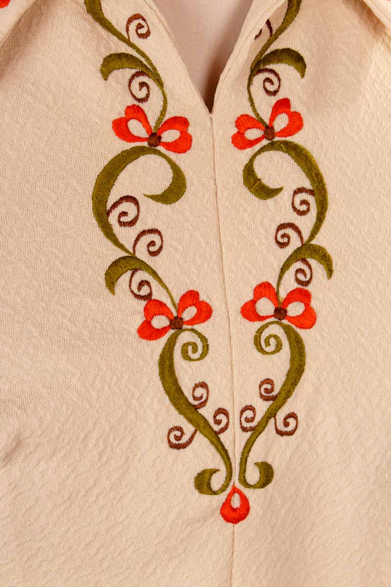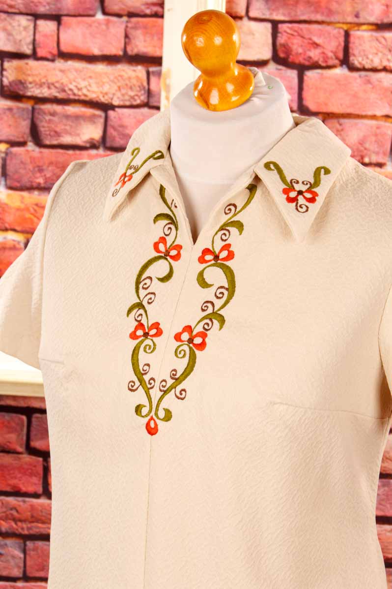 beigefarbenes Kleid aus dickem Stretchstoff mit bunter Stickerei