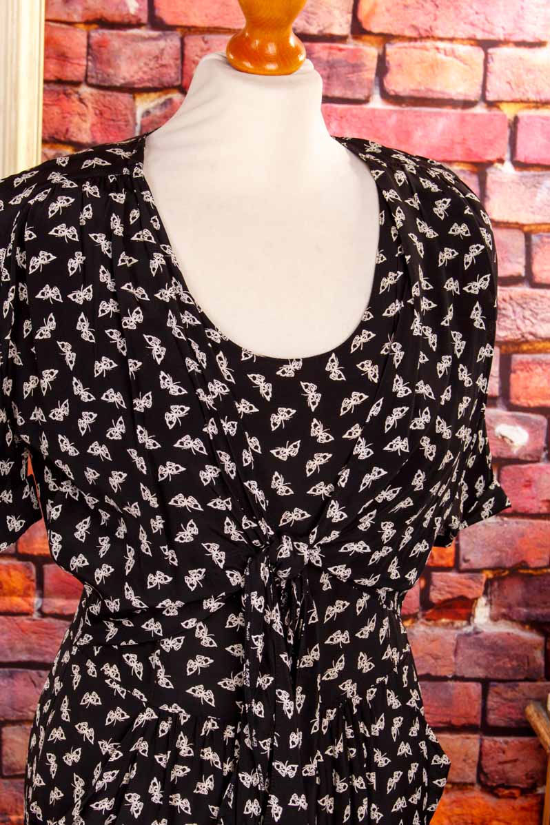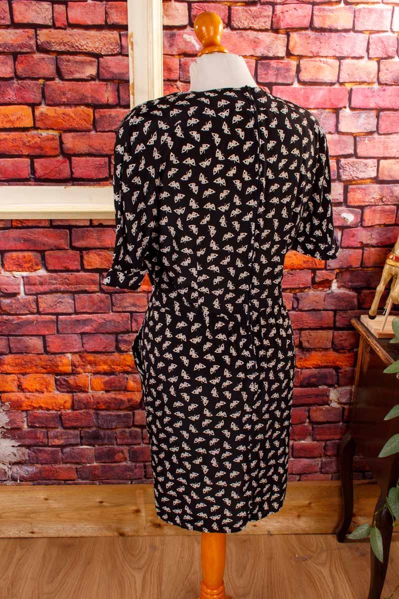 Dieses 80er Jahre Sommerkleid in klassischem Schwarz-Weiß-Muster entführt dich direkt in den legendären Pretty-Woman-Look. Das Oberteil im verspielten Wickellook schmeichelt deiner Figur, während der praktische Reißverschluss auf der Rückseite für einen bequemen Sitz sorgt. Gefertigt aus feinem Stoff, trägt sich das Kleid luftig und leicht – perfekt für warme Tage und unvergessliche Sommermomente. Mit diesem Kultstück zeigst du deinen einzigartigen Stil mit einem Hauch nostalgischem Charme!Original 80er-Jahre!
