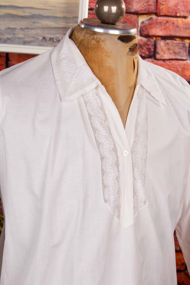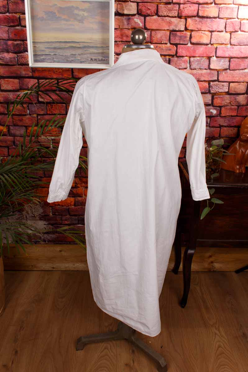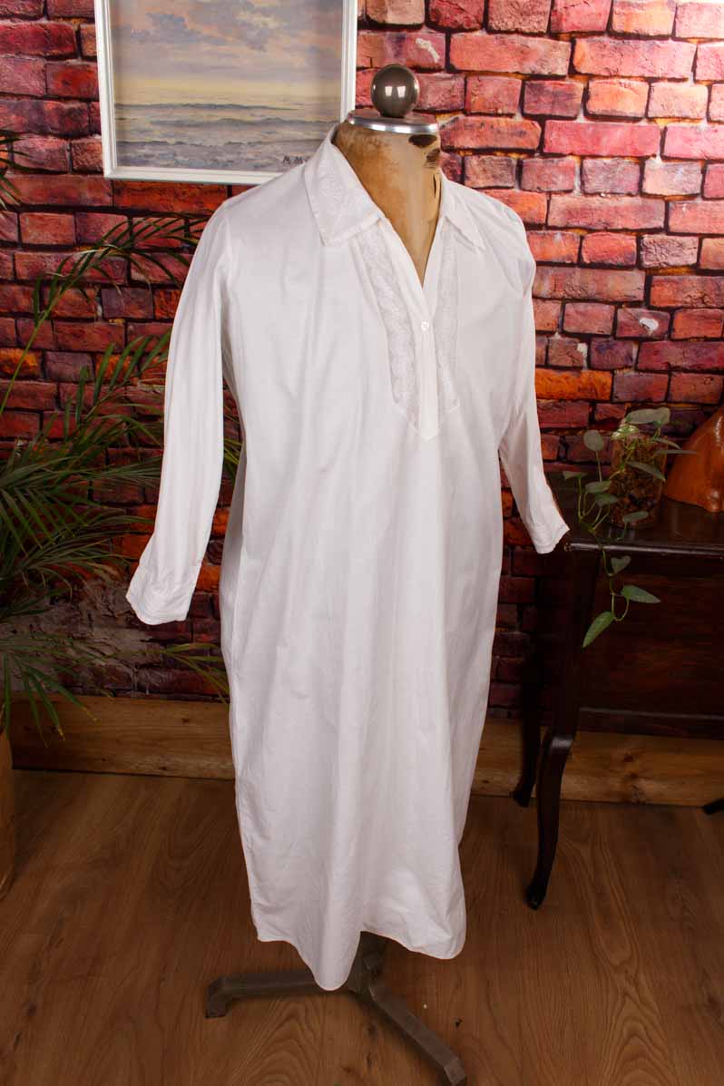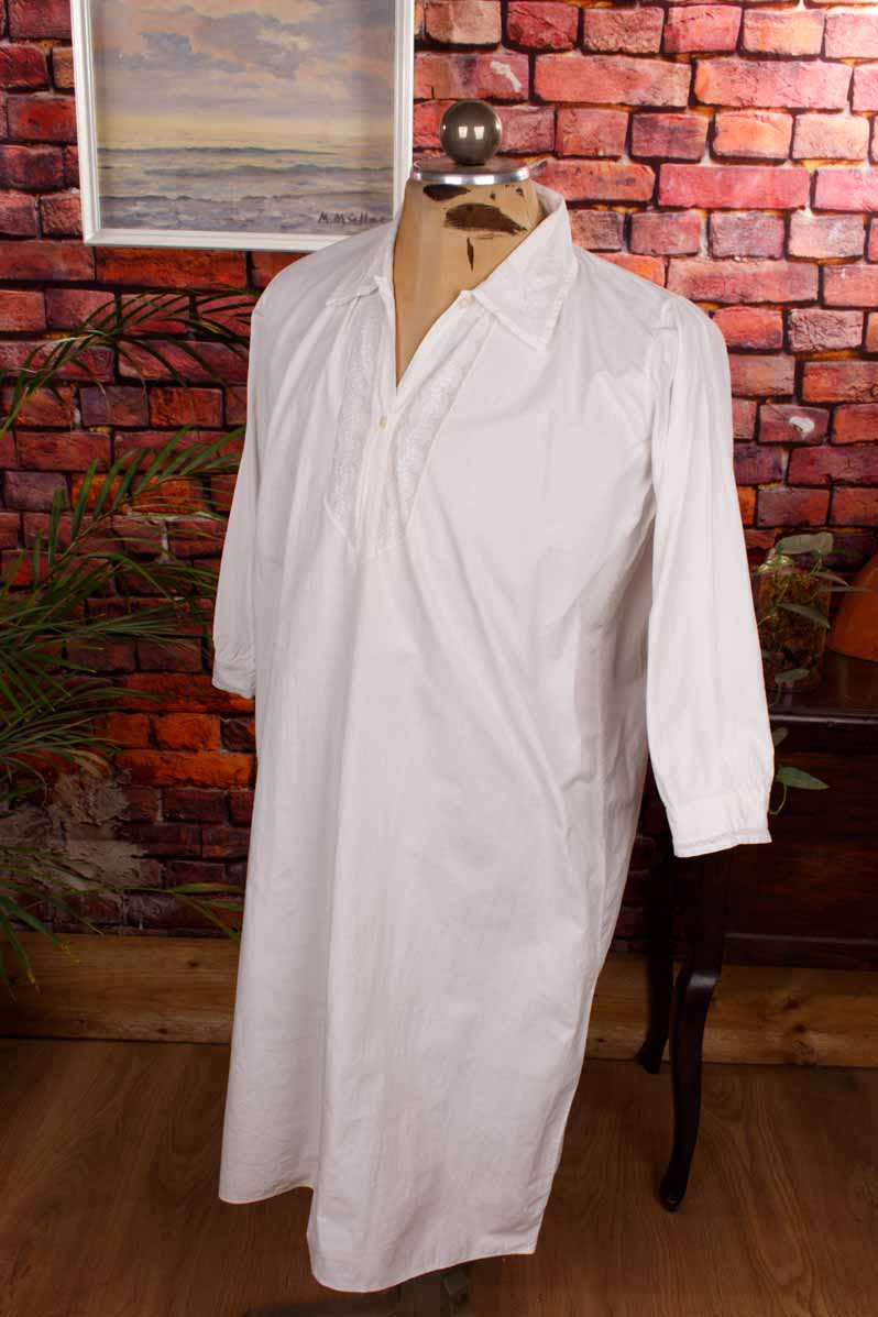 antikes Nachthemd aus weißem Leinenstoff in geradem Schnitt mit Spitzenkragen