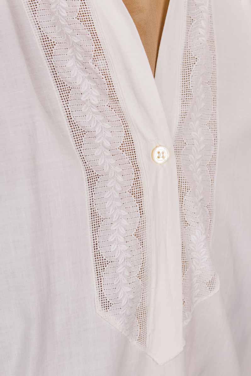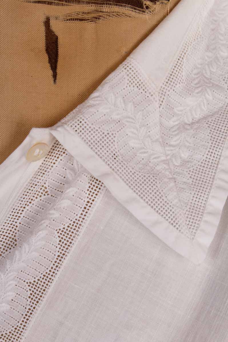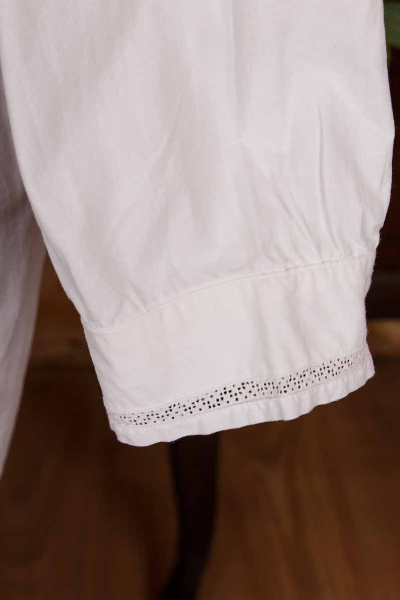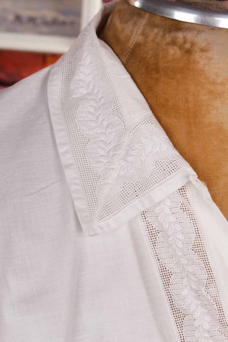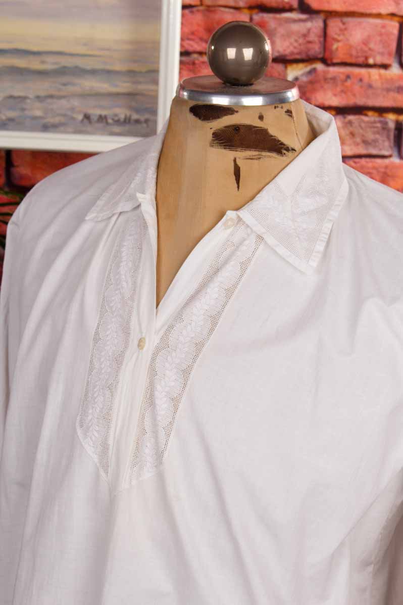 antikes Nachthemd aus weißem Leinenstoff in geradem Schnitt mit Spitzenkragen