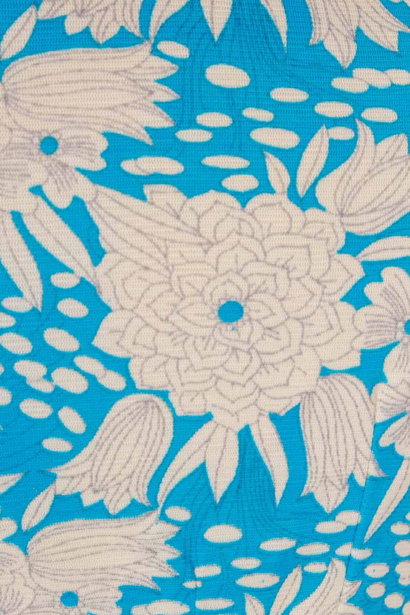 türkis gemustertes Top aus Stretchstoff mit großem Kragen und kurzer Knopfleiste