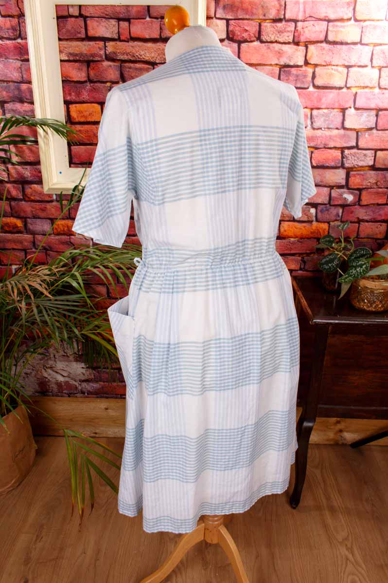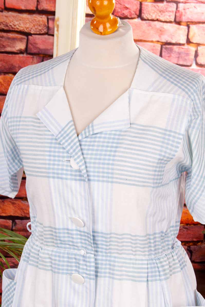hellblau-weiß kariertes Kleid aus leichtem Baumwollmix mit durchgehender Knopfleiste und großen Taschen