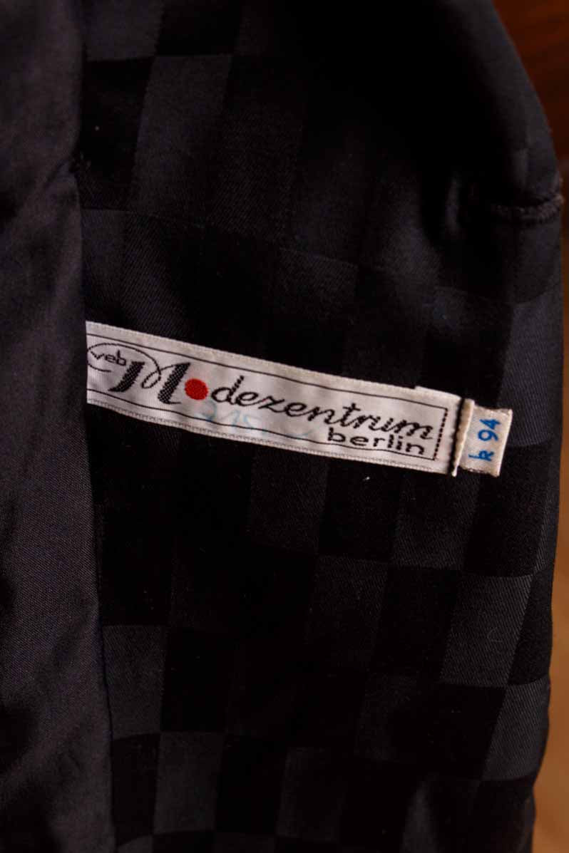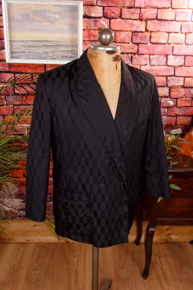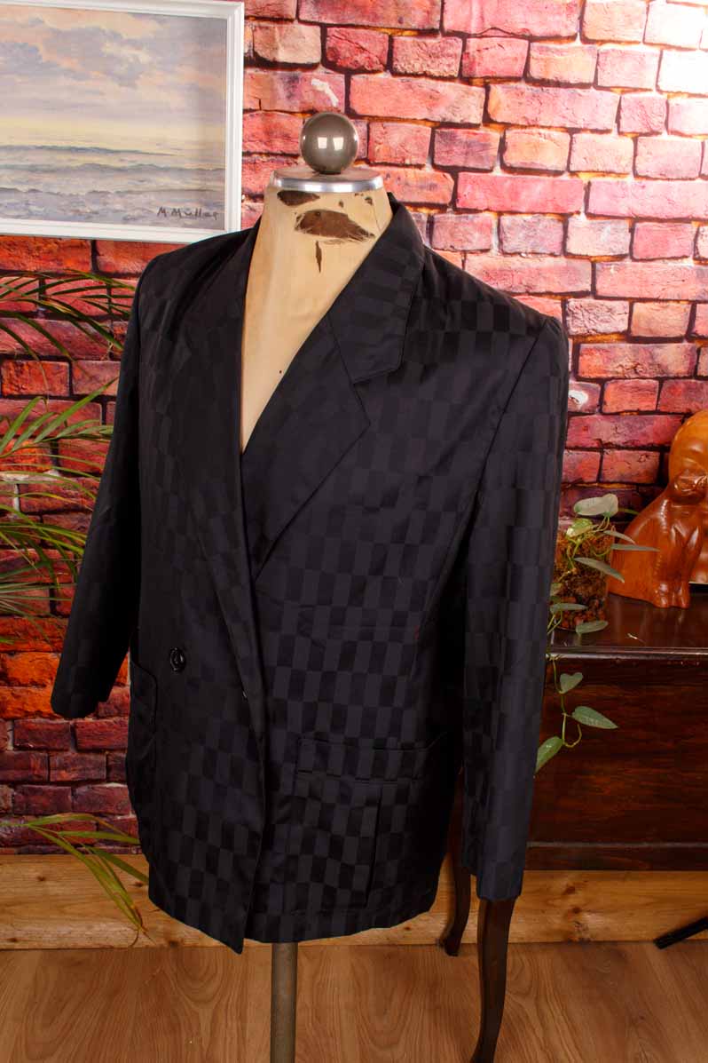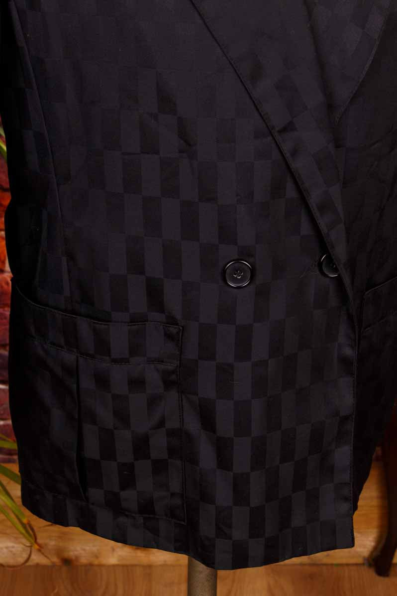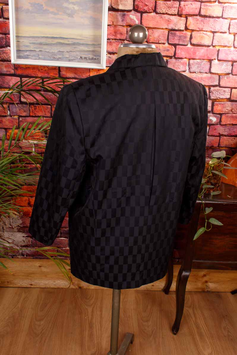 extravagantes Sakko aus schwarzem Stoff mit Schachbrettmuster und Doppel-Knopf