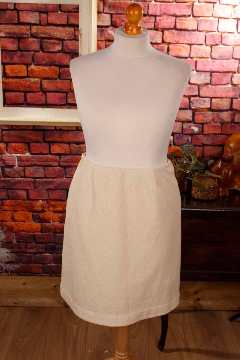 eleganter kurzer Rock aus beige-goldfarbenem Stoff mit Glitzerfäden