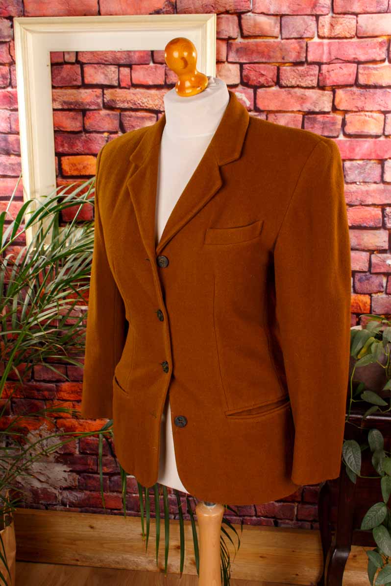 Dieser wunderbar elegante Blazer aus den 90ern ist ein echtes Schätzchen für alle Vintage-Liebhaber! Das edle Wolle-Kaschmir-Gemisch in warmem Rehbraun schmeichelt jeder Hautfarbe und verleiht jedem Outfit sofort Sophistication. Die leicht taillierte Schnittform betont die Figur auf subtile Weise, während die hochwertige Fütterung für angenehmen Tragekomfort sorgt. Praktische Taschen und ein klassischer Knopfverschluss runden das zeitlose Design ab. Ob zum Businesslook oder elegant gestylt zur Jeans – dieser Blazer ist der perfekte Begleiter für jeden Anlass und beweist, dass guter Stil niemals aus der Mode kommt. Original 90er-Jahre!