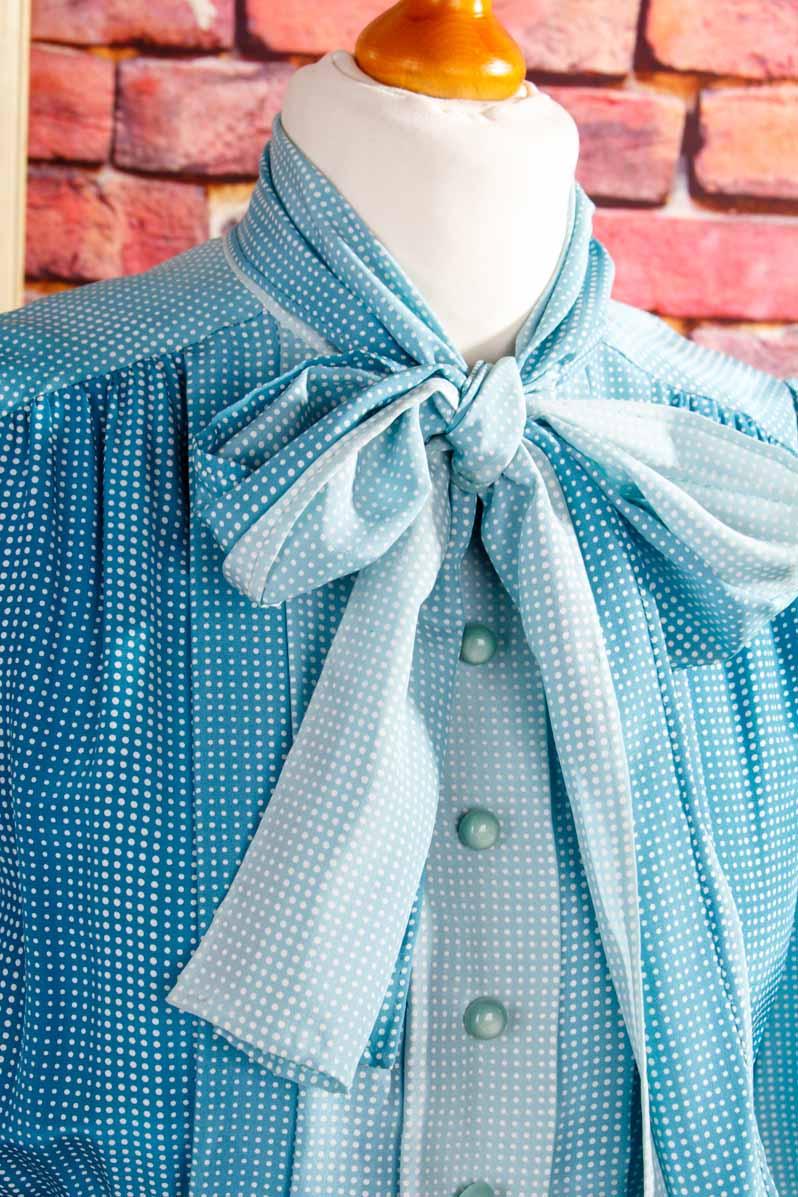 wunderschönes, elegantes Kleid aus feiner, türkisfarben gemusterter Seide mit vielen liebevollen Details