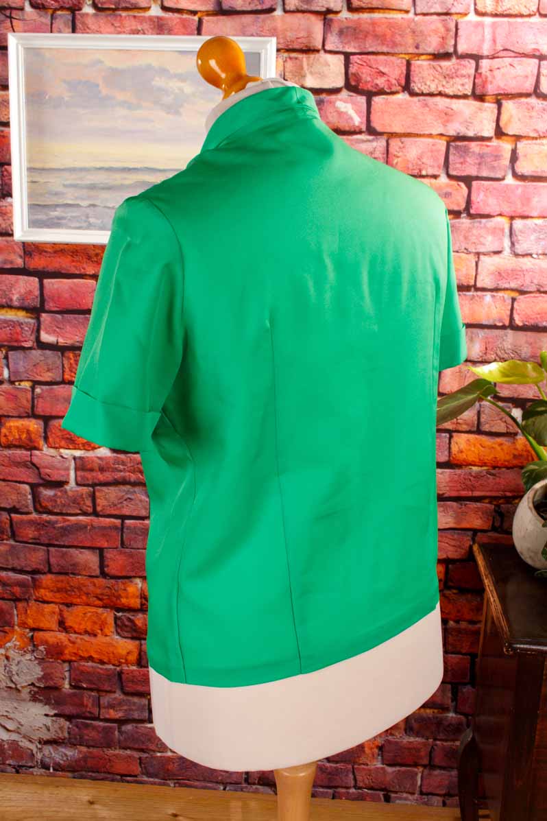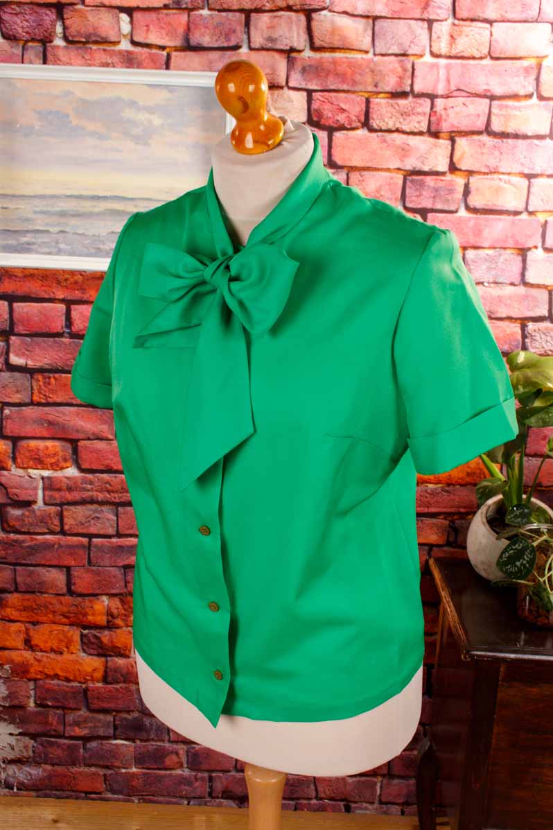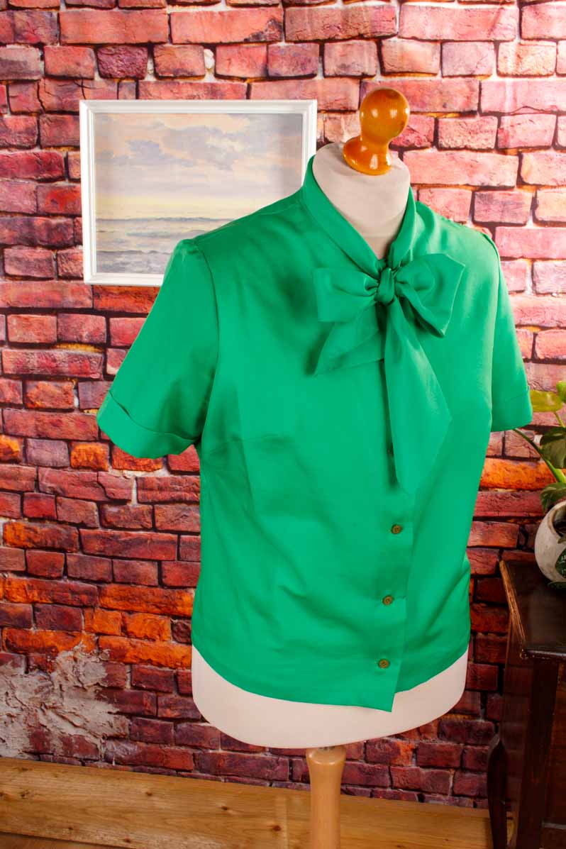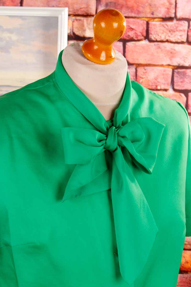 elegante Bluse aus feinem, grasgrünem Stoff mit Schleifenkragen