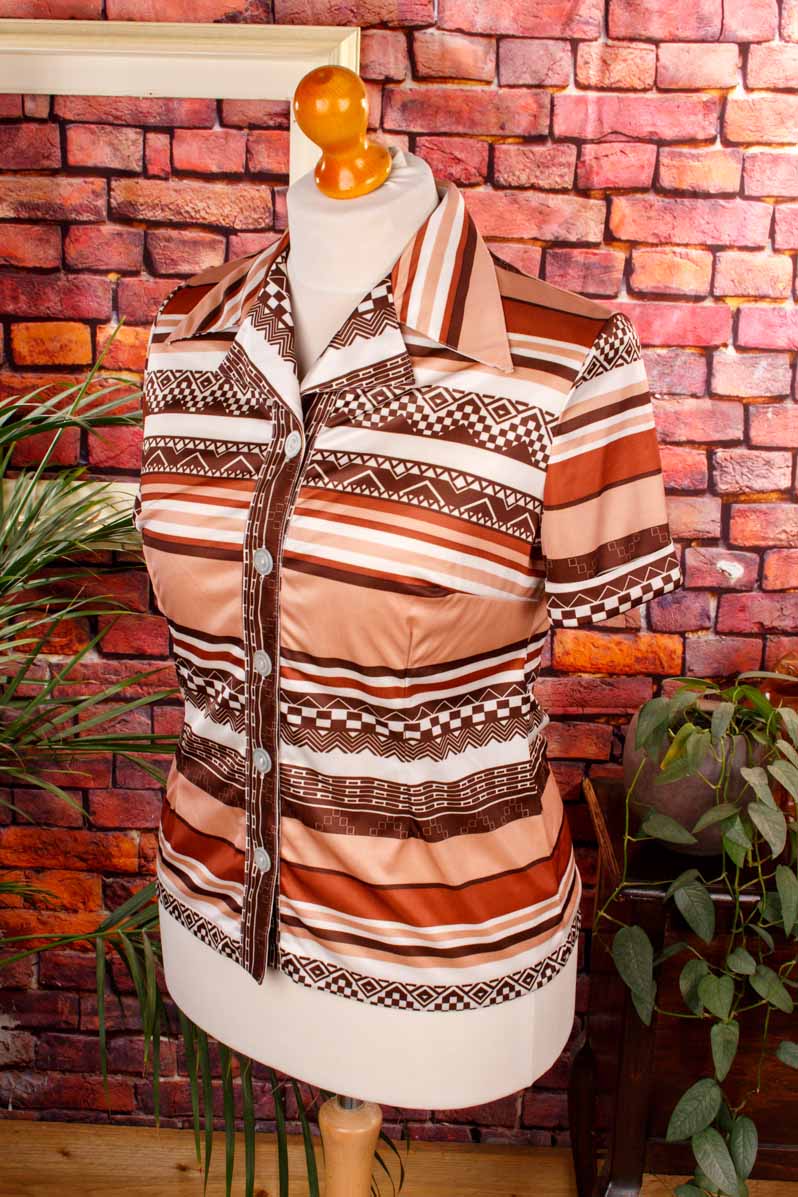 Vintage Stretchbluse braun Muster