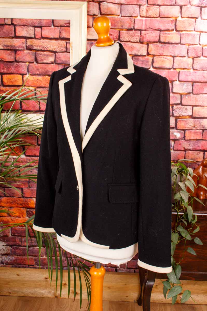eleganter Blazer aus schwarzem Wollmix mit weißen Details