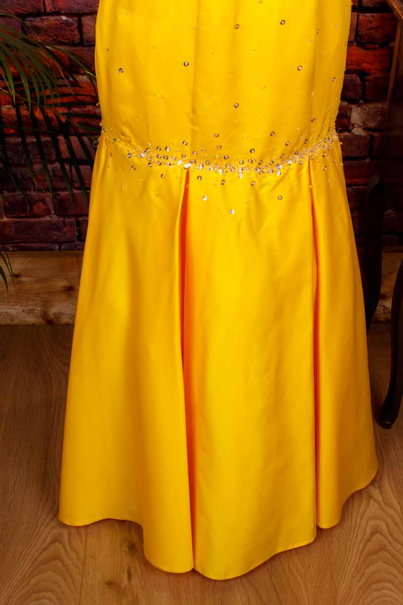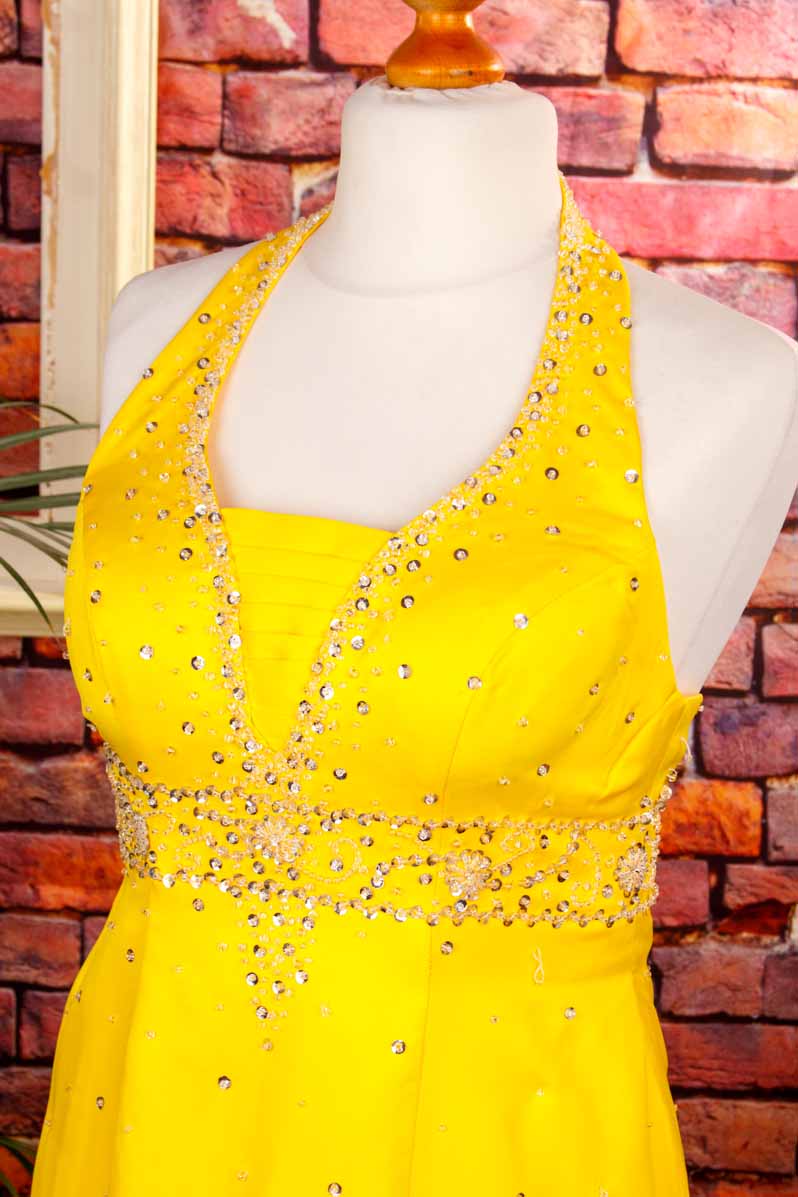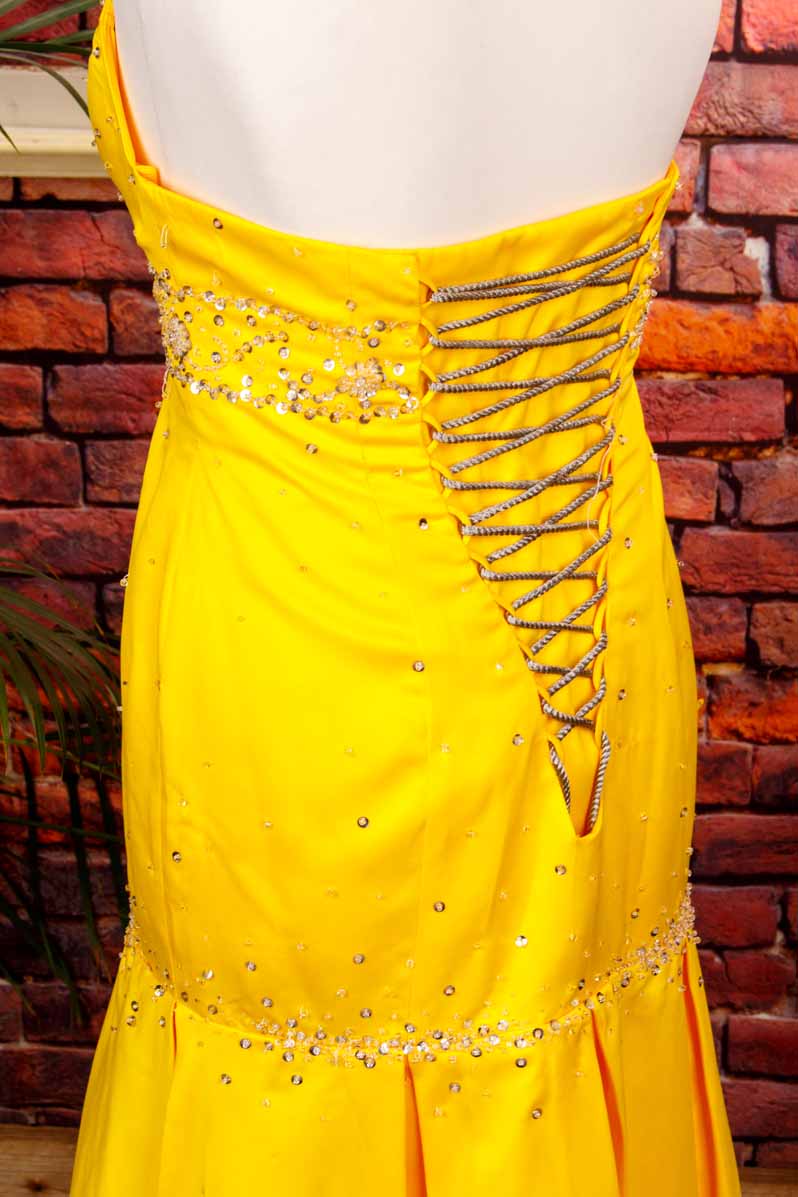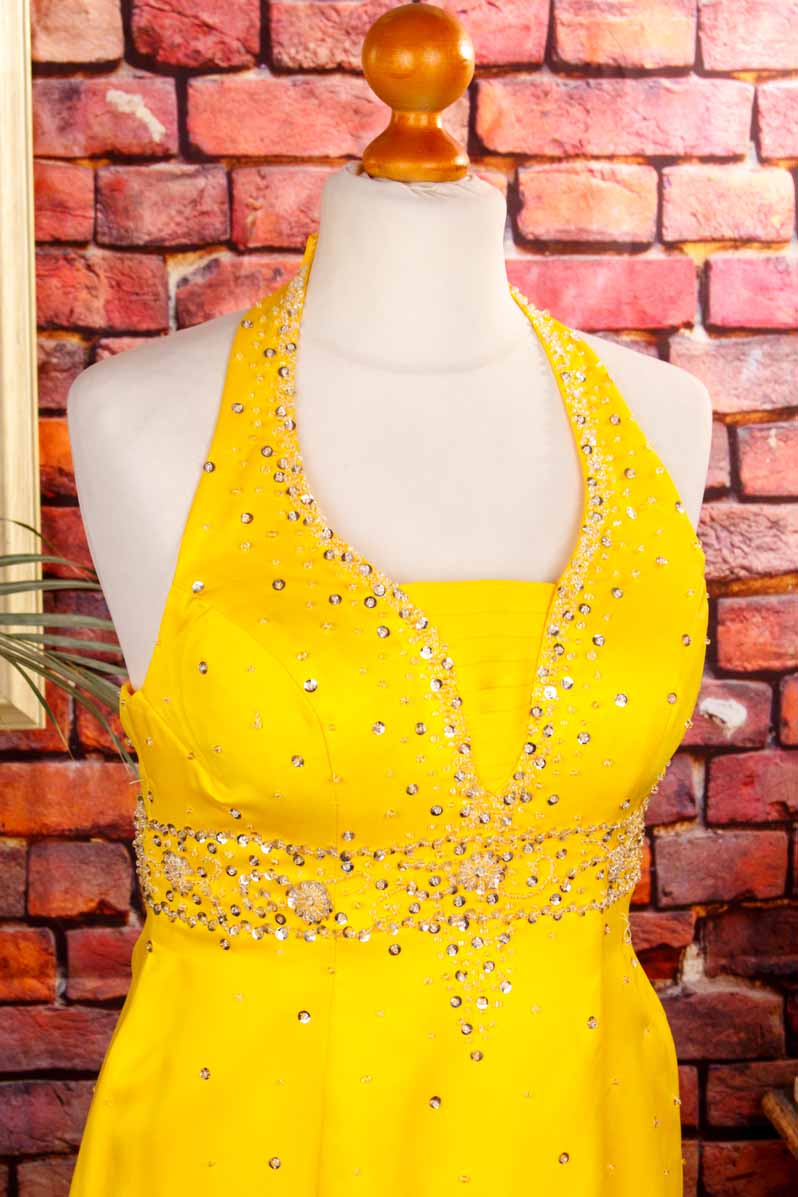 Dieses extravagante Abendkleid in strahlendem Kanariengelb bringt jeden Auftritt zum Leuchten. Gefertigt aus matt schimmerndem Stoff, verleiht es mit funkelnden Perlen und einer kunstvollen Schnürung eine verspielte Eleganz. Das weiche Futter sorgt für angenehm angenehmen Tragekomfort, während der auffällige Farbton garantiert alle Blicke auf sich zieht. Perfekt für unvergessliche Abende, an denen Sie Ihre verspielte Seite zeigen möchten.