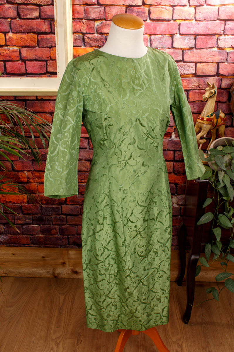 Rockabella Seidenkleid grün Brokat